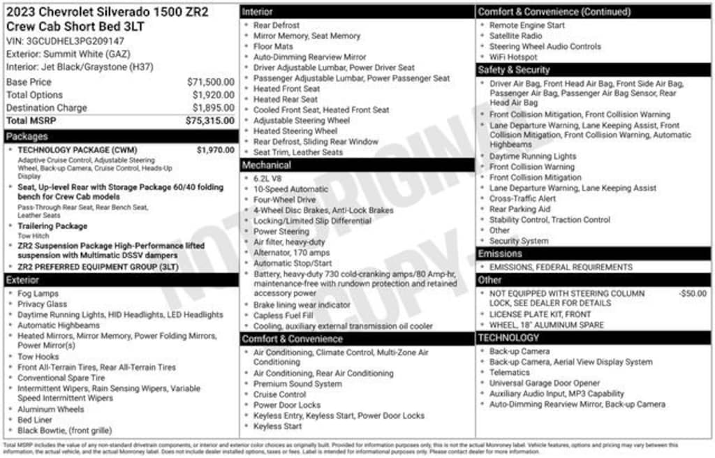 Turn every drive into something special with this Chevrolet Silverado 1500 from Salt Lake Valley Chevrolet! Designed for comfort, performance, and style, this vehicle comes fully equipped with modern technology and convenience features youâll love. Plus, enjoy a $1,000 finance savings, already included in the sale price, when you finance through one of our trusted lending partners. If youâre shopping for used cars in Salt Lake City, or searching for the perfect SUV, truck, or sedan, this Chevrolet Silverado 1500 delivers the dependability and value youâre looking for. Itâs the ideal match for your lifestyle - ready for everything from mountain adventures to city commutes. Visit Salt Lake Valley Chevrolet today and see why so many Utah drivers trust us for great deals on quality pre-owned vehicles. Explore our inventory online at www.slvchevy.com or call 801-969-8221 to schedule your test drive today! This impressive vehicle includes Preferred Equipment Group 3LT (10-Way Power Driver Seat w/Lumbar, 10-Way Power Passenger Seat Adjuster w/Lumbar, 12.3 Multicolor Reconfigurable Digital Display, 120-Volt Bed Mounted Power Outlet, 120-Volt Instrument Panel Power Outlet, 170 Amp Alternator, 2 USB Data Ports, 2nd Row Heated Outboard Seats, All-Weather Floor Liner (LPO), Auto-Dimming Inside Rear-View Mirror, Auto-Locking Rear Differential, Bed View Camera, Bluetooth® For Phone, Chevrolet Connected Access Capable, Chevytec Spray-On Black Bedliner, Color-Keyed Carpeting Floor Covering, Compass, Deep-Tinted Glass, Driver Memory, Dual Exhaust, Dual Rear USB Ports (Charge Only), Electric Rear-Window Defogger, Electrical Steering Column Lock, Electronic Cruise Control, EZ Lift Power Lock & Release Tailgate, Floor Mounted Center Console, Front LED Fog Lamps, Front Rainsensing Wipers, HD Surround Vision, Heated Driver & Front Outboard Passenger Seats, Heated Steering Wheel, Heavy-Duty Air Filter, High Gloss Black Mirror Caps, Hill Descent Control, Hitch Guidance w/Hitch View, Integrated Trailer Brake Controller, Keyless Open & Start, LED Cargo Area Lighting, Manual Tilt/Telescoping Steering Column, OnStar & Chevrolet Connected Services Capable, Outside Heated Power-Adjustable Mirrors, Performance Red Recovery Hooks, Perimeter Lighting, Power Front Passenger Windows w/Express Up/Down, Power Front Windows w/Driver Express Up/Down, Power Rear Windows w/Express Down, Power Sliding Rear Window w/Rear Defogger, Rear Cross Traffic Alert-Braking, Rear Park Assist, Rear Pedestrian Alert, Rear Wheelhouse Liners, Remote Vehicle Starter System, Safety Alert Seat, SiriusXM w/360L, Standard Tailgate, Steering Wheel Audio Controls, Theft Deterrent System (Unauthorized Entry), Trailer Camera Provisions, Trailer Side Blind Zone Alert, Trailering App, Universal Home Remote, Ventilated Driver & Front Passenger Seats, Wi-Fi Hot Spot Capable, Wireless Charging, Wireless Phone Projection, and Wrapped Steering Wheel), Technology Package (15 Diagonal Multicolor Head-Up Display, Adaptive Cruise Control, Power Tilt & Telescoping Steering Column, and Rear Camera Mirror), Trailering Package (Hitch Guidance), Up-Level Rear Seat w/Storage Package, ZR2 Suspension Package, 3.23 Rear Axle Ratio, 4-Wheel Disc Brakes, 7 Speakers, ABS brakes, Air Conditioning, Alloy wheels, AM/FM radio: SiriusXM with 360L, Apple CarPlay/Android Auto, Auto High-beam Headlights, Auto-dimming door mirrors, Auto-dimming Rear-View mirror, Automatic Emergency Braking, Automatic temperature control, Brake assist, Delay-off headlights, Driver door bin, Driver vanity mirror, Dual front impact airbags, Dual front side impact airbags, Electronic Stability Control, Electronic Transmission Range Selector Shifter, Following Distance Indicator, Forward Collision Alert, Front anti-roll bar, Front Bucket Seats, Front Center Armrest, Front dual zone A/C, Front fog lights, Front License Plate Kit, Front Pedestrian Braking, Front reading lights, Front wheel independent suspension, Fully automatic headlig