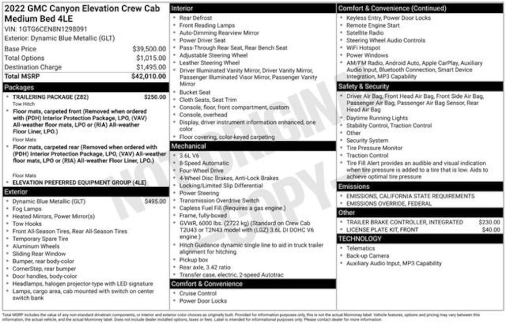 Take your drives to the next level with this GMC Canyon from Salt Lake Valley Buick GMC! Engineered for a smooth ride, advanced convenience, and lasting dependability, this vehicle is ready to handle everything your day throws at you. Plus, enjoy a $1,000 finance savings, already included in the sale price, when you finance through one of our trusted lending partners. Looking for quality used cars in Salt Lake City? This GMC Canyon delivers style, versatility, and value - perfect for daily commutes, family trips, or weekend adventures. Stop by Salt Lake Valley Buick GMC to see this vehicle in person and explore our wide selection of pre-owned cars, trucks, and SUVs. Browse online at www.slvbuickgmc.com or call 801-265-1511 to schedule your test drive today! With Preferred Equipment Group 4LE (Hitch Guidance and Tow/Haul Mode), Trailering Package, 3.42 Rear Axle Ratio, 4-Wheel Disc Brakes, 6 Speakers, 6-Speaker Audio System Feature, ABS brakes, Air Conditioning, Alloy wheels, AM/FM radio: SiriusXM, Apple CarPlay/Android Auto, Auto-dimming Rear-View mirror, Automatic temperature control, Bumpers: body-color, Cloth Seat Trim, Compass, Delay-off headlights, Driver 6-Way Power Seat Adjuster, Driver door bin, Driver vanity mirror, Dual front impact airbags, Dual front side impact airbags, Electronic Stability Control, Emergency communication system: OnStar and GMC Connected Services capable, Exterior Parking Camera Rear, Front anti-roll bar, Front Bucket Seats, Front Center Armrest, Front fog lights, Front License Plate Kit, Front reading lights, Front wheel independent suspension, Fully automatic headlights, Heated door mirrors, Illuminated entry, Integrated Trailer Brake Controller, Low tire pressure warning, Occupant sensing airbag, Outside temperature display, Overhead airbag, Overhead console, Panic alarm, Passenger door bin, Passenger vanity mirror, Power door mirrors, Power driver seat, Power steering, Power windows, Premium audio system: GMC Infotainment System, Radio data system, Radio: AM/FM w/8 Diagonal Color Touch-Screen, Rear reading lights, Rear seat center armrest, Rear step bumper, Rear window defroster, Remote keyless entry, Security system, SiriusXM Radio, Speed control, Speed-sensing steering, Steering wheel mounted audio controls, Tachometer, Telescoping steering wheel, Tilt steering wheel, Traction control, Trip computer, Variably intermittent wipers, and Wheels: 18 x 8.5 Black Painted Aluminum designed for convenience and enjoyment, this GMC Canyon is ready to take you wherever you want to go. Certified. GMC Certified Pre-Owned Details: