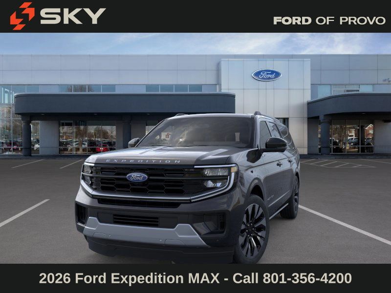 This 2026 Agate Black Metallic Ford Expedition Max Platinum 4WD is well equipped and includes these features and benefits: Ford Connectivity Package (1-Year Included), 10 Speakers, 2nd Row Power-Folding Captain's Chairs, 3.73 Axle Ratio, 3rd row seats: split-bench, 4-Wheel Disc Brakes, ABS brakes, Air Conditioning, Alloy wheels, AM/FM radio: SiriusXM with 360L, Apple CarPlay/Android Auto, Auto High-beam Headlights, Auto-dimming door mirrors, Auto-dimming Rear-View mirror, Automatic temperature control, Brake assist, Bumpers: body-color, Compass, Delay-off headlights, Driver door bin, Driver vanity mirror, Dual front impact airbags, Dual front side impact airbags, Electronic Stability Control, Emergency communication system: 911 Assist, Exterior Parking Camera Rear, Ford Digital Experience, Four wheel independent suspension, Front anti-roll bar, Front Bucket Seats, Front Center Armrest, Front dual zone A/C, Front reading lights, Fully automatic headlights, Garage door transmitter, Genuine wood dashboard insert, Genuine wood door panel insert, Heated and Ventilated Leather Front Captain's Chairs, Heated door mirrors, Heated front seats, Heated rear seats, Heated steering wheel, Illuminated entry, Leather steering wheel, Low tire pressure warning, Memory seat, Navigation System, Occupant sensing airbag, Outside temperature display, Overhead airbag, Overhead console, Panic alarm, Passenger door bin, Passenger vanity mirror, Power door mirrors, Power driver seat, Power moonroof: Vista Roof, Power passenger seat, Power steering, Power windows, Radio data system, Radio: B&O Sound System by Bang and Olufsen, Rain sensing wipers, Rear air conditioning, Rear anti-roll bar, Rear reading lights, Rear window defroster, Rear window wiper, Reclining 3rd row seat, Remote keyless entry, Security system, SiriusXM with 360L, Speed control, Speed-sensing steering, Speed-Sensitive Wipers, Split folding rear seat, Spoiler, Steering wheel memory, Steering wheel mounted audio controls, Tachometer, Telescoping steering wheel, Tilt steering wheel, Traction control, Trip computer, Turn signal indicator mirrors, Variably intermittent wipers, Ventilated front seats, Voltmeter, and Wheels: 20" x 8.5" Ebony Bright Machined Aluminum.