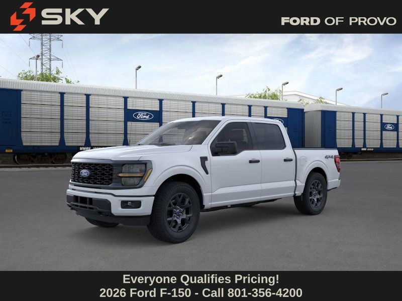 This 2026 Oxford White Ford F-150 STX 4WD is well equipped and includes these features and benefits: Ford Connectivity Package (1-Year Included), GVWR: 6,650 lbs Payload Package, Internet access capable: 5G Modem - Ford Connectivity Package, 4WD, 3.55 Axle Ratio, 4-Wheel Disc Brakes, 6 Speakers, ABS brakes, Air Conditioning, Alloy wheels, AM/FM radio: SiriusXM with 360L, Auto High-beam Headlights, Brake assist, Bumpers: body-color, Compass, Delay-off headlights, Driver door bin, Dual front impact airbags, Dual front side impact airbags, Electronic Stability Control, Emergency communication system: SYNC 4 911 Assist, Front anti-roll bar, Front Bucket Seats, Front Center Armrest, Front reading lights, Front wheel independent suspension, Fully automatic headlights, Heated door mirrors, Illuminated entry, Low tire pressure warning, Occupant sensing airbag, Outside temperature display, Overhead airbag, Overhead console, Panic alarm, Passenger door bin, Passenger vanity mirror, Power door mirrors, Power steering, Power windows, Radio data system, Radio: AM/FM Stereo with SiriusXM 360L, Rear step bumper, Rear window defroster, Remote keyless entry, Security system, Speed control, Split folding rear seat, Steering wheel mounted audio controls, SYNC 4 with Enhanced Voice Recognition, Tachometer, Telescoping steering wheel, Tilt steering wheel, Traction control, Trip computer, Unique Sport Cloth 40/Console/40 Front-Seats, Variably intermittent wipers, and Wheels: 18" Gloss Black.