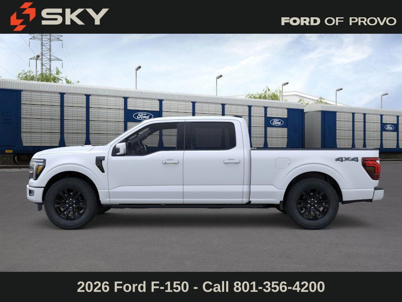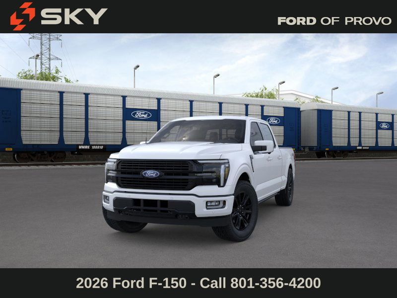 This 2026 Star White Metallic Tri-Coat Ford F-150 Platinum 4WD is well equipped and includes these features and benefits: Ford Connectivity Package (1-Year Included), GVWR: 7,400 lbs Payload Package, Internet access capable: 5G Modem - Ford Connectivity Package, 4WD, 4-Wheel Disc Brakes, 8 Speakers, ABS brakes, Adjustable pedals, Air Conditioning, Alloy wheels, AM/FM radio: SiriusXM with 360L, Auto High-beam Headlights, Auto tilt-away steering wheel, Auto-dimming door mirrors, Auto-dimming Rear-View mirror, Automatic temperature control, Brake assist, Bumpers: body-color, Compass, Delay-off headlights, Driver door bin, Driver vanity mirror, Dual front impact airbags, Dual front side impact airbags, Electronic Locking with 3.55 Axle Ratio, Electronic Stability Control, Emergency communication system: SYNC 4 911 Assist, Front anti-roll bar, Front Bucket Seats, Front Center Armrest, Front dual zone A/C, Front fog lights, Front reading lights, Front wheel independent suspension, Fully automatic headlights, Garage door transmitter, Heated door mirrors, Heated front seats, Heated rear seats, Heated steering wheel, Illuminated entry, Leather steering wheel, Low tire pressure warning, Memory seat, Navigation system: Connected Navigation, Occupant sensing airbag, Outside temperature display, Overhead airbag, Overhead console, Panic alarm, Passenger door bin, Passenger vanity mirror, Pedal memory, Power door mirrors, Power driver seat, Power passenger seat, Power steering, Power windows, Radio data system, Radio: B&O Sound System by Bang and Olufsen, Rain sensing wipers, Rear reading lights, Rear seat center armrest, Rear step bumper, Rear window defroster, Remote keyless entry, Security system, Speed control, Split folding rear seat, Steering wheel memory, Steering wheel mounted audio controls, SYNC 4 with Enhanced Voice Recognition, Tachometer, Telescoping steering wheel, Tilt steering wheel, Traction control, Trip computer, Turn signal indicator mirrors, Unique Multi-Contour Leather Bucket Seats, Variably intermittent wipers, Ventilated front seats, and Wheels: 20" Painted Gloss Ebony Black.