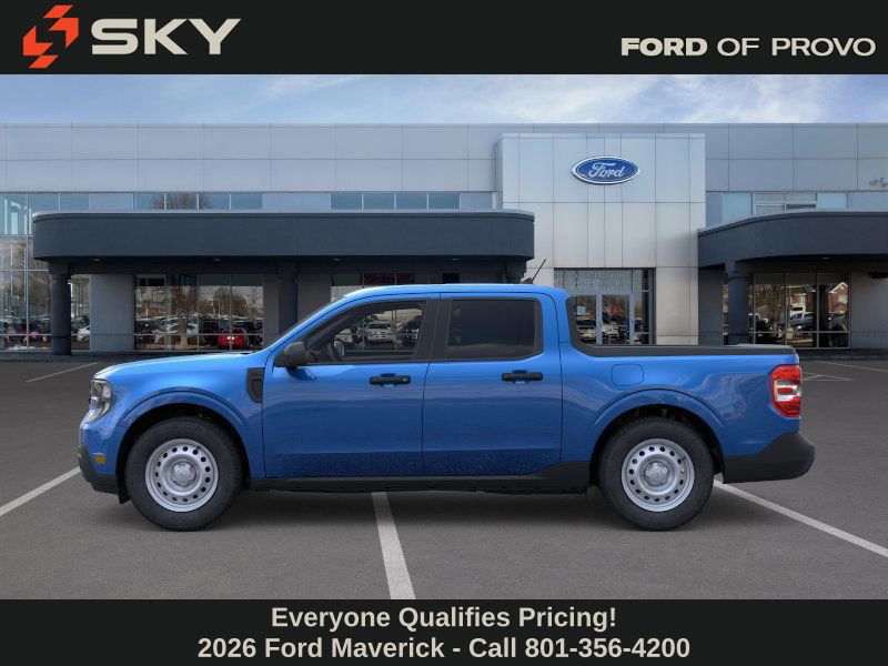This 2026 Velocity Blue Ford Maverick XL AWD is well equipped and includes these features and benefits: Ford Connectivity Package (1-Year Included), Internet access capable: 5G Modem - Ford Connectivity Package, 2.5L I-4 Hybrid, 2.91 Axle Ratio, 4-Wheel Disc Brakes, 6 Speakers, ABS brakes, Air Conditioning, AM/FM radio: SiriusXM with 360L, Apple CarPlay/Android Auto, Auto High Beams, Auto High-beam Headlights, Automatic temperature control, Brake assist, Bumpers: body-color, Compass, Delay-off headlights, Driver door bin, Driver vanity mirror, Dual front impact airbags, Dual front side impact airbags, Electronic Stability Control, Emergency communication system: SYNC 4 911 Assist, Exterior Parking Camera Rear, Four wheel independent suspension, Front anti-roll bar, Front Bucket Seats, Front Center Armrest, Front Cloth Bucket Seats, Front reading lights, Fully automatic headlights, Illuminated entry, Intersection Assist, Knee airbag, Lane-Keeping System, Low tire pressure warning, Occupant sensing airbag, Outside temperature display, Overhead airbag, Overhead console, Panic alarm, Passenger door bin, Passenger vanity mirror, Power steering, Power windows, Pre-Collision Assist with Automatic Emergency Braking, Radio data system, Radio: AM/FM Stereo with 6 Speakers, Rear anti-roll bar, Rear step bumper, Rear-View Camera, Remote keyless entry, SiriusXM with 360L, Speed control, Speed-sensing steering, Steering wheel mounted audio controls, SYNC 4 with Enhanced Voice Recognition, Telescoping steering wheel, Tilt steering wheel, Traction control, Trip computer, and Wheels: 17" Steel with Sparkle Silver Painted Cover.