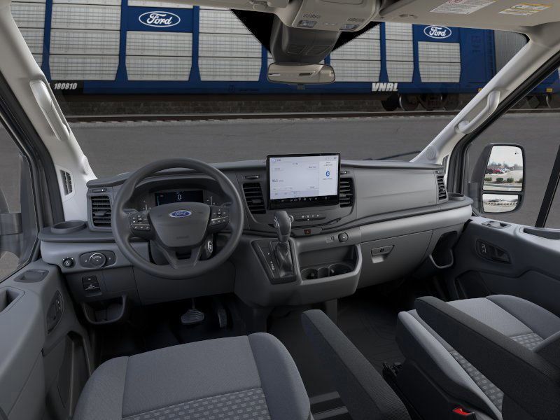 This 2026 Carbonized Gray Metallic Ford Transit-350 AWD is well equipped and includes these features and benefits: Ford Connectivity Package (1-Year Included), 3rd row seats: split-bench, 4-Wheel Disc Brakes, 4th-Row Bench Seat, 8 Speakers, ABS brakes, Air Conditioning, Apple CarPlay/Android Auto, Auto High-beam Headlights, Black High-Intensity Discharge (HID) Headlamps, Brake assist, Cloth Front Bucket Seats, Delay-off headlights, Driver door bin, Driver vanity mirror, Driver's Seat Mounted Armrest, Dual front impact airbags, Dual front side impact airbags, Electronic Stability Control, Emergency communication system: 911 Assist, Front anti-roll bar, Front Black Wheel Well Liners, Front Bucket Seats, Front reading lights, Front wheel independent suspension, Illuminated entry, Large Center Console, Low tire pressure warning, Navigation system: Connected Navigation, Occupant sensing airbag, Overhead airbag, Panic alarm, Passenger door bin, Passenger seat mounted armrest, Passenger vanity mirror, Power door mirrors, Power steering, Power windows, Rain sensing wipers, Rear air conditioning, Rear window defroster, Remote keyless entry, Speed control, Steering wheel mounted audio controls, SYNC 4, Tachometer, Telescoping steering wheel, Tilt steering wheel, Traction control, Variably intermittent wipers, and Wheels: 16" Silver Steel with Exposed Lug Nuts.