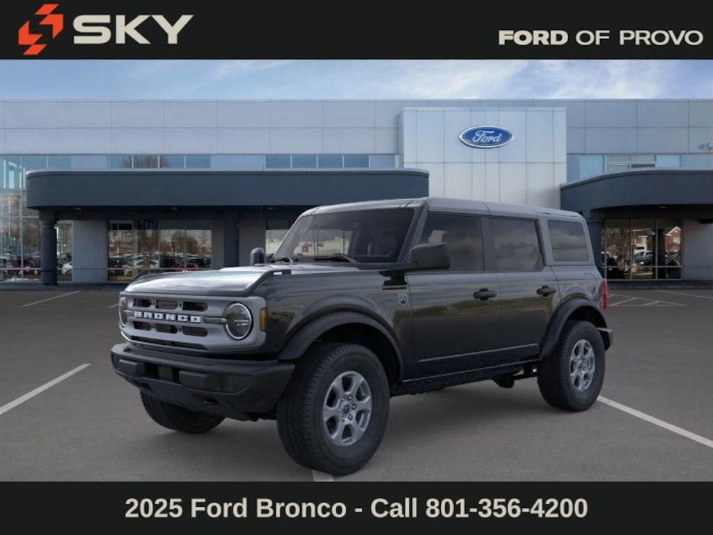 This 2025 Shadow Black Ford Bronco Big Bend 4WD is well equipped and includes these features and benefits: 4-Wheel Disc Brakes, 4.46 Axle Ratio, 7 Speakers, ABS brakes, Air Conditioning, Alloy wheels, AM/FM radio: SiriusXM with 360L, AM/FM Stereo, Auto High-beam Headlights, Brake assist, Cloth Bucket Seats, Compass, Delay-off headlights, Driver door bin, Driver vanity mirror, Dual front impact airbags, Dual front side impact airbags, Electronic Stability Control, Emergency communication system: 911 Assist, Exterior Parking Camera Rear, Front anti-roll bar, Front Bucket Seats, Front Center Armrest, Front reading lights, Front wheel independent suspension, Fully automatic headlights, Heated door mirrors, Illuminated entry, Integrated roll-over protection, Leather Shift Knob, Low tire pressure warning, Occupant sensing airbag, Outside temperature display, Overhead airbag, Overhead console, Panic alarm, Passenger door bin, Passenger vanity mirror, Power door mirrors, Power steering, Power windows, Radio data system, Remote keyless entry, Security system, SiriusXM w/360L, Speed control, Split folding rear seat, Steering wheel mounted audio controls, SYNC 4, Tachometer, Telescoping steering wheel, Tilt steering wheel, Traction control, Trip computer, Variably intermittent wipers, and Wheels: 17" Carbonized Gray-Painted Aluminum.