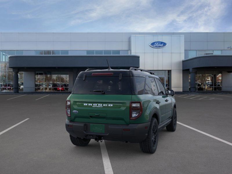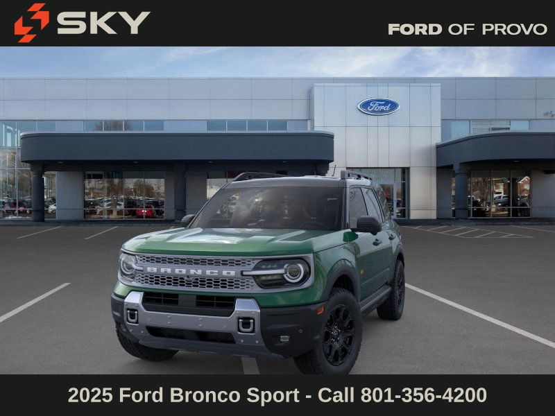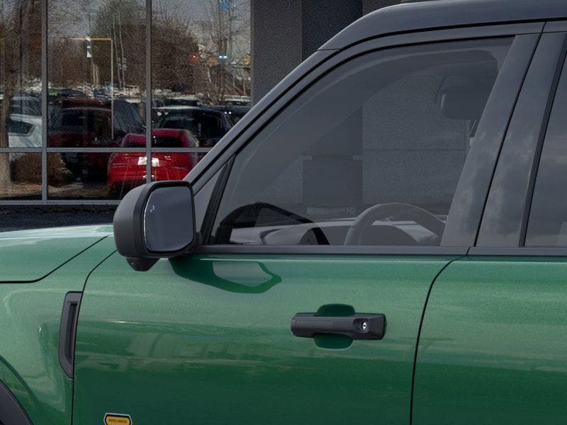 This 2025 Eruption Green Metallic Ford Bronco Sport Badlands 4WD is well equipped and includes these features and benefits: 4-Wheel Disc Brakes, 6 Speakers, ABS brakes, Air Conditioning, Alloy wheels, AM/FM radio: SiriusXM, AM/FM Stereo, Auto High-beam Headlights, Auto-dimming Rear-View mirror, Automatic temperature control, Brake assist, Compass, Delay-off headlights, Driver door bin, Driver vanity mirror, Dual front impact airbags, Dual front side impact airbags, Electronic Stability Control, Emergency communication system: SYNC 4 911 Assist, Four wheel independent suspension, Front anti-roll bar, Front Bucket Seats, Front Center Armrest, Front fog lights, Front reading lights, Fully automatic headlights, Garage door transmitter, Heated door mirrors, Heated front seats, Heated steering wheel, Illuminated entry, Knee airbag, Leather Trimmed Front Bucket Seats, Low tire pressure warning, Memory seat, Occupant sensing airbag, Outside temperature display, Overhead airbag, Overhead console, Panic alarm, Passenger door bin, Passenger vanity mirror, Power door mirrors, Power driver seat, Power passenger seat, Power steering, Power windows, Radio data system, Rear anti-roll bar, Rear reading lights, Rear seat center armrest, Rear window defroster, Rear window wiper, Remote keyless entry, Security system, SiriusXM, Speed control, Speed-sensing steering, Speed-Sensitive Wipers, Split folding rear seat, Steering wheel mounted audio controls, SYNC 4 w/Enhanced Voice Recognition, Tachometer, Telescoping steering wheel, Tilt steering wheel, Traction control, Trip computer, Variably intermittent wipers, and Wheels: 17" Matte Black-Painted Aluminum.