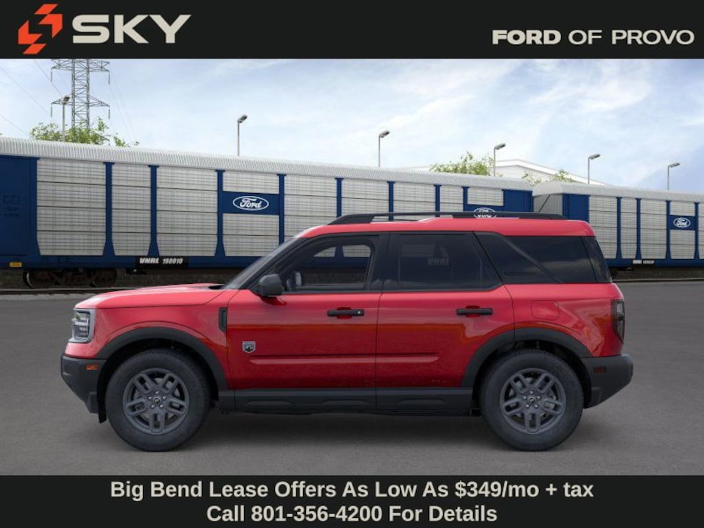 This 2025 Ruby Red Metallic Tinted Clearcoat Ford Bronco Sport Big Bend 4WD is well equipped and includes these features and benefits: 4-Wheel Disc Brakes, 6 Speakers, ABS brakes, Air Conditioning, Alloy wheels, AM/FM radio: SiriusXM, AM/FM Stereo, Auto High-beam Headlights, Automatic temperature control, Brake assist, Cloth w/Easy-to-Clean Front Bucket Seats, Compass, Delay-off headlights, Driver door bin, Driver vanity mirror, Dual front impact airbags, Dual front side impact airbags, Electronic Stability Control, Emergency communication system: SYNC 4 911 Assist, Four wheel independent suspension, Front anti-roll bar, Front Bucket Seats, Front Center Armrest, Front reading lights, Fully automatic headlights, Heated door mirrors, Illuminated entry, Knee airbag, Low tire pressure warning, Occupant sensing airbag, Outside temperature display, Overhead airbag, Overhead console, Panic alarm, Passenger door bin, Passenger vanity mirror, Power door mirrors, Power steering, Power windows, Radio data system, Rear anti-roll bar, Rear Parking Sensors, Rear reading lights, Rear seat center armrest, Rear window defroster, Rear window wiper, Remote keyless entry, Security system, SiriusXM, Speed control, Speed-sensing steering, Speed-Sensitive Wipers, Split folding rear seat, Steering wheel mounted audio controls, SYNC 4 w/Enhanced Voice Recognition, Tachometer, Telescoping steering wheel, Tilt steering wheel, Traction control, Trip computer, Variably intermittent wipers, and Wheels: 17" Carbonized Gray-Painted Aluminum.