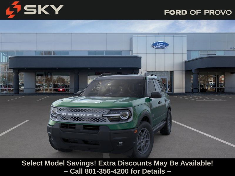 This 2025 Eruption Green Metallic Ford Bronco Sport Big Bend 4WD is well equipped and includes these features and benefits: Convenience Package (Front Driver/Passenger Seat Back Map Pockets, Heated 8-Way Power Driver's Seat, LED Fog Lamps, Premium Wrapped Steering Wheel, and Universal Garage Door Opener (UGDO)), Equipment Group 200A, 4-Wheel Disc Brakes, 6 Speakers, ABS brakes, Air Conditioning, Alloy wheels, AM/FM radio: SiriusXM, AM/FM Stereo, Auto High-beam Headlights, Automatic temperature control, Brake assist, Cargo Mat, Cloth w/Easy-to-Clean Front Bucket Seats, Compass, Delay-off headlights, Driver door bin, Driver vanity mirror, Dual front impact airbags, Dual front side impact airbags, Electronic Stability Control, Emergency communication system: SYNC 4 911 Assist, Four wheel independent suspension, Front anti-roll bar, Front Bucket Seats, Front Center Armrest, Front reading lights, Fully automatic headlights, Heated door mirrors, Illuminated entry, Knee airbag, Low tire pressure warning, Occupant sensing airbag, Outside temperature display, Overhead airbag, Overhead console, Panic alarm, Passenger door bin, Passenger vanity mirror, Power door mirrors, Power Moonroof, Power steering, Power windows, Radio data system, Rear anti-roll bar, Rear Parking Sensors, Rear reading lights, Rear seat center armrest, Rear window defroster, Rear window wiper, Remote keyless entry, Security system, SiriusXM, Speed control, Speed-sensing steering, Speed-Sensitive Wipers, Split folding rear seat, Steering wheel mounted audio controls, SYNC 4 w/Enhanced Voice Recognition, Tachometer, Telescoping steering wheel, Tilt steering wheel, Traction control, Trip computer, Variably intermittent wipers, and Wheels: 17" Carbonized Gray-Painted Aluminum.