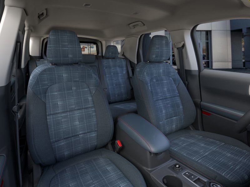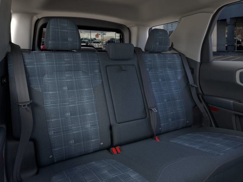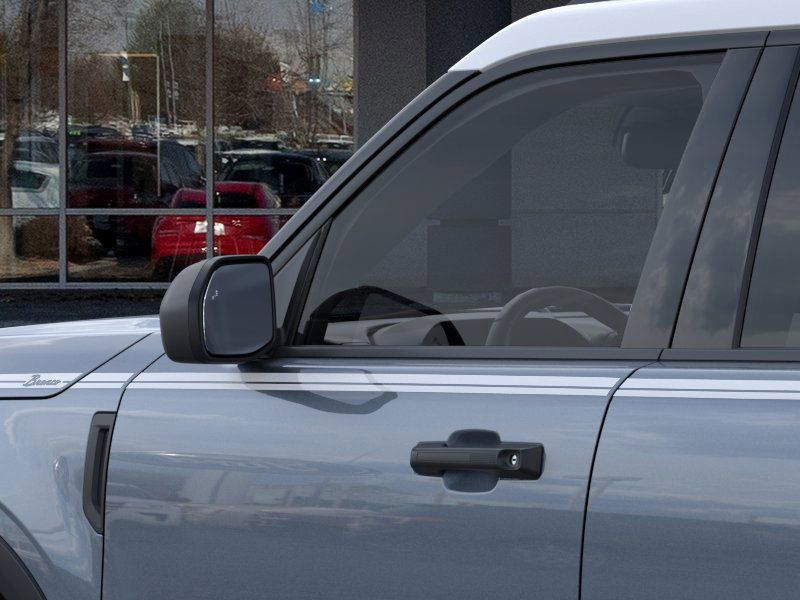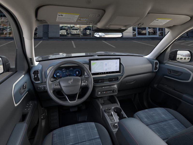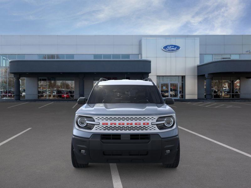 This 2025 Azure Gray Metallic Ford Bronco Sport Heritage 4WD is well equipped and includes these features and benefits: Convenience Package (Front Driver/Passenger Seat Back Map Pockets, Heated 8-Way Power Driver's Seat, LED Fog Lamps, Premium Wrapped Steering Wheel, and Universal Garage Door Opener (UGDO)), Equipment Group 250A, 4-Wheel Disc Brakes, 6 Speakers, ABS brakes, Air Conditioning, Alloy wheels, AM/FM radio: SiriusXM, AM/FM Stereo, Auto High-beam Headlights, Automatic temperature control, Brake assist, Compass, Delay-off headlights, Driver door bin, Driver vanity mirror, Dual front impact airbags, Dual front side impact airbags, Electronic Stability Control, Emergency communication system: SYNC 4 911 Assist, Four wheel independent suspension, Front anti-roll bar, Front Bucket Seats, Front Center Armrest, Front License Plate Bracket, Front reading lights, Fully automatic headlights, Heated door mirrors, Illuminated entry, Knee airbag, Low tire pressure warning, Occupant sensing airbag, Outside temperature display, Overhead airbag, Overhead console, Panic alarm, Passenger door bin, Passenger vanity mirror, Plaid Cloth Front Bucket Seats, Power door mirrors, Power steering, Power windows, Radio data system, Rear anti-roll bar, Rear Parking Sensors, Rear reading lights, Rear seat center armrest, Rear window defroster, Rear window wiper, Remote keyless entry, Security system, SiriusXM, Speed control, Speed-sensing steering, Speed-Sensitive Wipers, Split folding rear seat, Steering wheel mounted audio controls, SYNC 4 w/Enhanced Voice Recognition, Tachometer, Telescoping steering wheel, Tilt steering wheel, Traction control, Trip computer, Variably intermittent wipers, and Wheels: 17" Oxford White-Painted Aluminum.