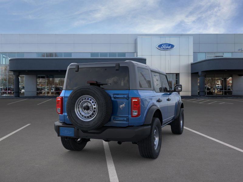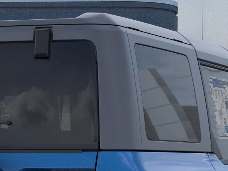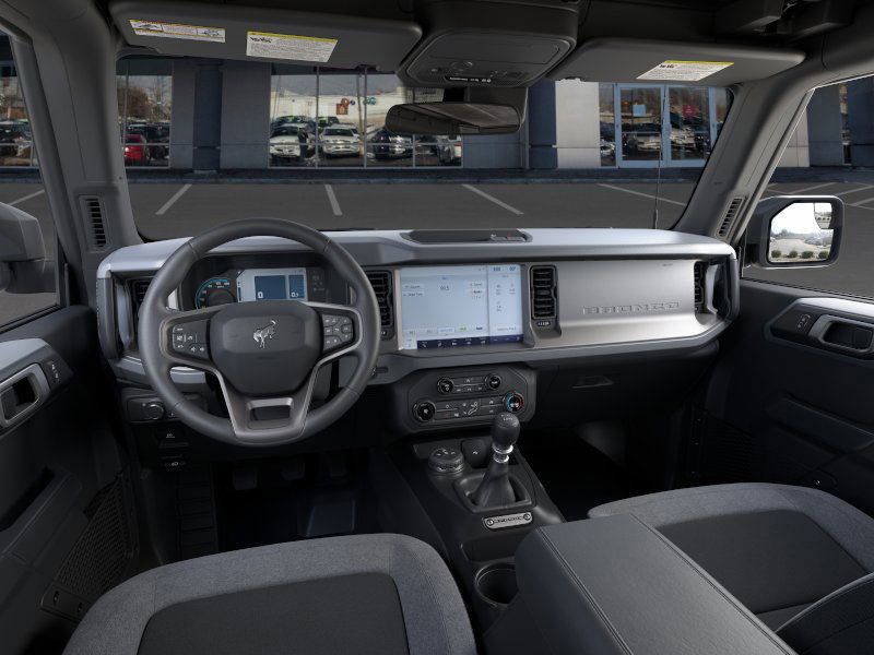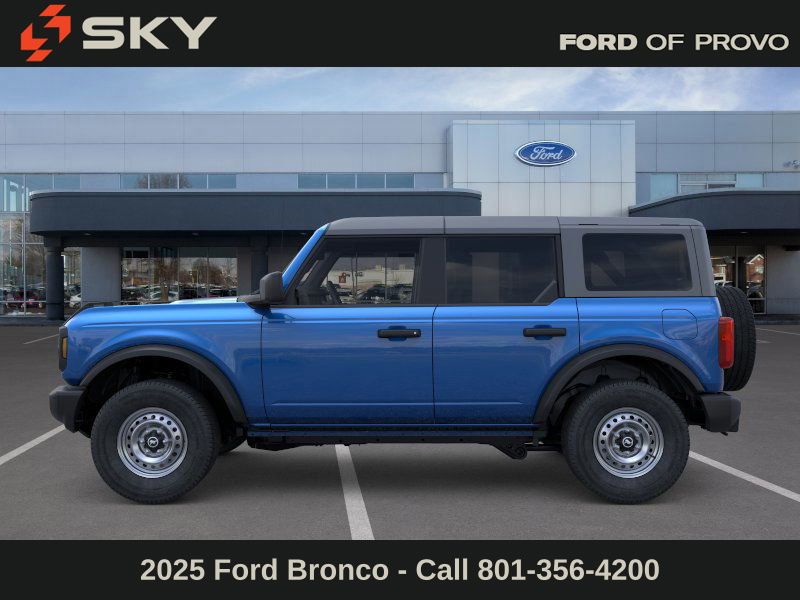 This 2025 Velocity Blue Metallic Ford Bronco 4WD is well equipped and includes these features and benefits: Equipment Group 101A, 4-Wheel Disc Brakes, 4.46 Axle Ratio, 7 Speakers, ABS brakes, Air Conditioning, AM/FM radio: SiriusXM with 360L, AM/FM Stereo, Auto High-beam Headlights, Brake assist, Carbonized Gray Molded-In-Color Hard Top, Cloth Bucket Seats, Compass, Delay-off headlights, Driver door bin, Driver vanity mirror, Dual front impact airbags, Dual front side impact airbags, Electronic Stability Control, Emergency communication system: 911 Assist, Exterior Parking Camera Rear, Front anti-roll bar, Front Bucket Seats, Front Center Armrest, Front License Plate Bracket, Front reading lights, Front wheel independent suspension, Fully automatic headlights, Hard Top Sound Deadening Headliner, Heated door mirrors, Illuminated entry, Integrated roll-over protection, Internet access capable: FordPass Connect, Low tire pressure warning, Occupant sensing airbag, Outside temperature display, Overhead airbag, Overhead console, Panic alarm, Passenger door bin, Passenger vanity mirror, Power door mirrors, Power steering, Power windows, Radio data system, Rear-Window Defroster & Washer, Remote keyless entry, Security system, SiriusXM w/360L, Speed control, Split folding rear seat, Steering wheel mounted audio controls, SYNC 4, Tachometer, Telescoping steering wheel, Tilt steering wheel, Traction control, Trip computer, Variably intermittent wipers, and Wheels: 16" Bright Polished Silver-Painted Steel.