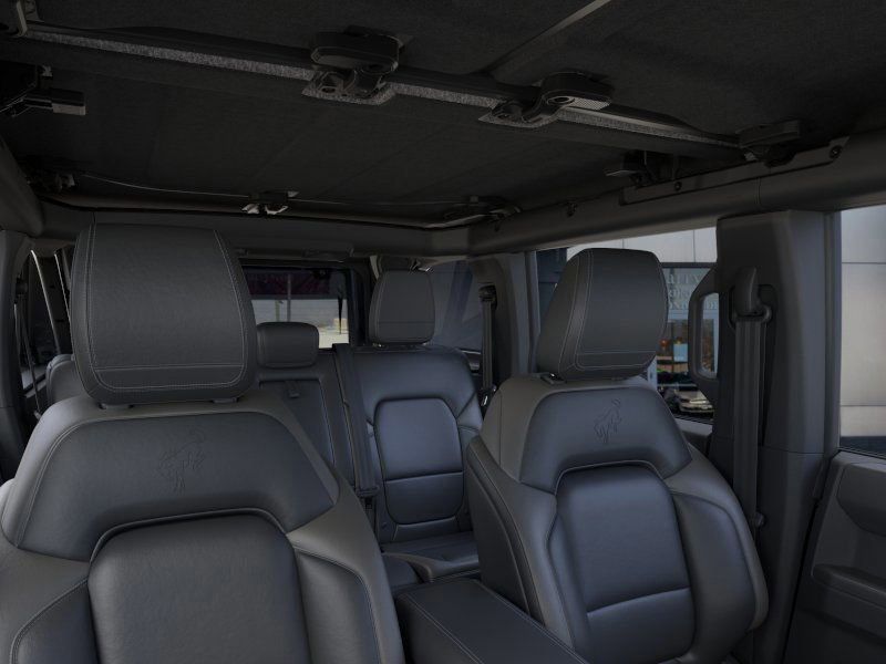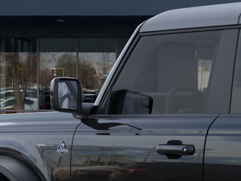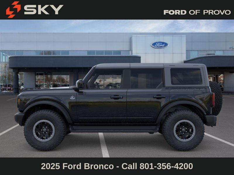 This 2025 Shadow Black Ford Bronco Outer Banks Advanced 4WD is well equipped and includes these features and benefits: 18" Bright Machined Aluminum Wheels, 3.73 Axle Ratio, 4-Wheel Disc Brakes, 7 Speakers, ABS brakes, Air Conditioning, Alloy wheels, AM/FM radio: SiriusXM with 360L, AM/FM Stereo, Auto High-beam Headlights, Auto-dimming Rear-View mirror, Automatic temperature control, Brake assist, Compass, Connected Navigation, Delay-off headlights, Driver door bin, Driver vanity mirror, Dual front impact airbags, Dual front side impact airbags, Electronic Stability Control, Emergency communication system: 911 Assist, Exterior Parking Camera Rear, Front anti-roll bar, Front Bucket Seats, Front Center Armrest, Front dual zone A/C, Front fog lights, Front reading lights, Front wheel independent suspension, Fully automatic headlights, Heated door mirrors, Heated front seats, Heated Leather-Trimmed/Vinyl Bucket Seats, Heated steering wheel, Illuminated entry, Integrated roll-over protection, Internet access capable: FordPass Connect, Leather Shift Knob, Low tire pressure warning, Navigation system: Connected Navigation, Occupant sensing airbag, Outside temperature display, Overhead airbag, Overhead console, Panic alarm, Passenger door bin, Passenger vanity mirror, Power door mirrors, Power driver seat, Power passenger seat, Power steering, Power windows, Radio data system, Rear seat center armrest, Remote keyless entry, Security system, SiriusXM w/360L, Speed control, Split folding rear seat, Steering wheel mounted audio controls, SYNC 4, Tachometer, Telescoping steering wheel, Tilt steering wheel, Traction control, Trip computer, Variably intermittent wipers, and Voltmeter.