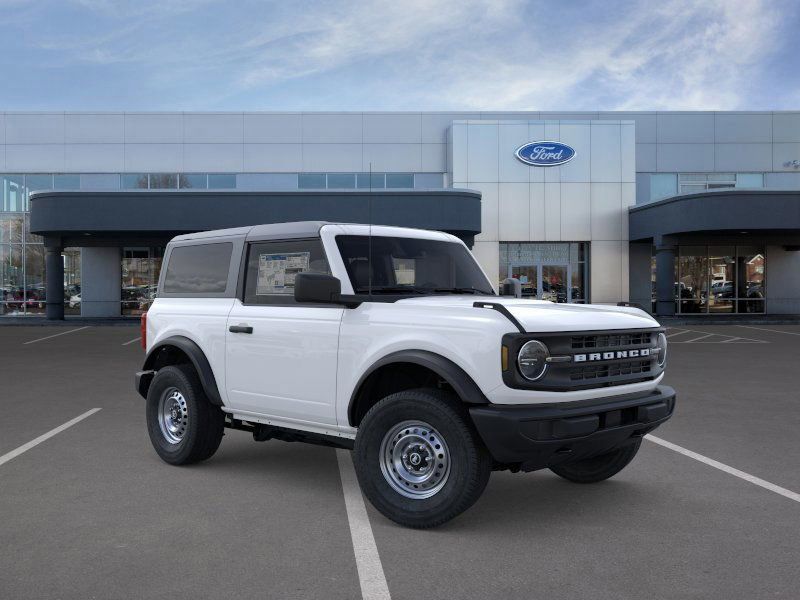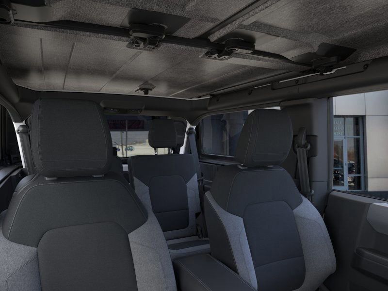 This 2025 Oxford White Ford Bronco 4WD is well equipped and includes these features and benefits: Equipment Group 101A, 4-Wheel Disc Brakes, 4.46 Axle Ratio, 7 Speakers, ABS brakes, Air Conditioning, AM/FM radio: SiriusXM with 360L, AM/FM Stereo, Auto High-beam Headlights, Brake assist, Cloth Bucket Seats, Compass, Convertible HardTop, Convertible roof lining, Delay-off headlights, Driver door bin, Driver vanity mirror, Dual front impact airbags, Dual front side impact airbags, Electronic Stability Control, Emergency communication system: 911 Assist, Exterior Parking Camera Rear, Front & Rear Floor Liners w/o Carpet Floor Mats, Front anti-roll bar, Front Bucket Seats, Front Center Armrest, Front License Plate Bracket, Front reading lights, Front Row Top Panels & Door Storage Bags, Front wheel independent suspension, Fully automatic headlights, Glass rear window, Heated door mirrors, Illuminated entry, Integrated roll-over protection, Internet access capable: FordPass Connect, Low tire pressure warning, Occupant sensing airbag, Outside temperature display, Overhead airbag, Overhead console, Panic alarm, Passenger door bin, Passenger vanity mirror, Power door mirrors, Power steering, Power windows, Radio data system, Rear window defroster, Rear window wiper, Remote keyless entry, Security system, SiriusXM w/360L, Speed control, Split folding rear seat, Steering wheel mounted audio controls, SYNC 4, Tachometer, Telescoping steering wheel, Tilt steering wheel, Traction control, Trip computer, Variably intermittent wipers, and Wheels: 16" Bright Polished Silver-Painted Steel.
