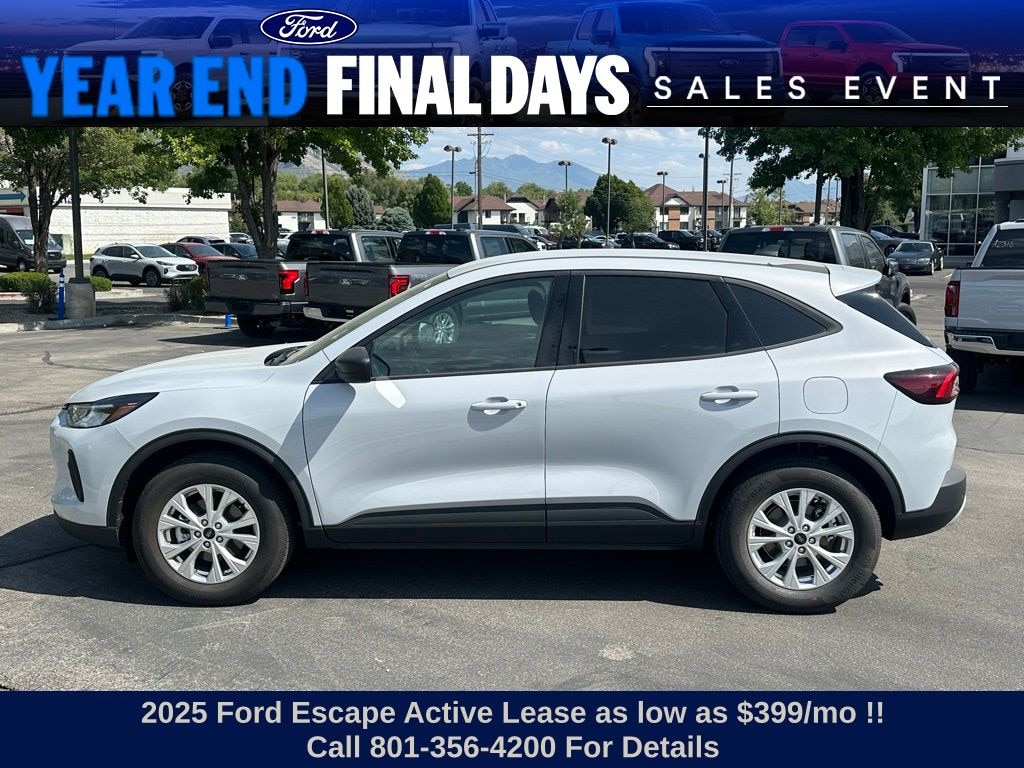 This 2025 Space Silver Metallic Ford Escape Active AWD is well equipped and includes these features and benefits: Cold Weather Package (Heated Front Row Seats, Heated Sideview Mirrors, Heated Steering Wheel, and Remote Starter System), Equipment Group 200A, Tech Pack #1 (Adaptive Cruise Control w/Stop-and-Go, Connected Navigation, Ford Co-Pilot360 Assist+, Intersection Assist, Predictive Speed Assist, Rear Parking Sensor, Rear-View Camera, and SYNC 4 w/Enhanced Voice Recognition), AWD, 3.81 Axle Ratio, 4-Wheel Disc Brakes, 6 Speakers, ABS brakes, Air Conditioning, Alloy wheels, AM/FM radio: SiriusXM, AM/FM Stereo, Auto High-beam Headlights, Automatic temperature control, Brake assist, Bumpers: body-color, Compass, Delay-off headlights, Driver door bin, Driver vanity mirror, Dual front impact airbags, Dual front side impact airbags, Electronic Stability Control, Emergency communication system: SYNC 4 911 Assist, FordPass Connect, Four wheel independent suspension, Front anti-roll bar, Front Bucket Seats, Front Center Armrest, Front dual zone A/C, Front License Plate Bracket, Front reading lights, Fully automatic headlights, Illuminated entry, Internet access capable: FordPass Connect 4G, Knee airbag, Low tire pressure warning, Occupant sensing airbag, Outside temperature display, Overhead airbag, Overhead console, Panic alarm, Passenger door bin, Passenger vanity mirror, Power door mirrors, Power Liftgate, Power steering, Power windows, Radio data system, Rear anti-roll bar, Rear reading lights, Rear seat center armrest, Rear window defroster, Rear window wiper, Remote keyless entry, Speed control, Speed-sensing steering, Speed-Sensitive Wipers, Split folding rear seat, Spoiler, Steering wheel mounted audio controls, SYNC 4, Tachometer, Telescoping steering wheel, Tilt steering wheel, Traction control, Trip computer, Unique Cloth Front Bucket Seats, Variably intermittent wipers, and Wheels: 17" Shadow Silver-Painted Aluminum.