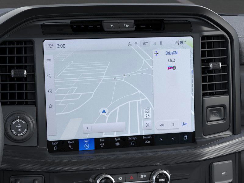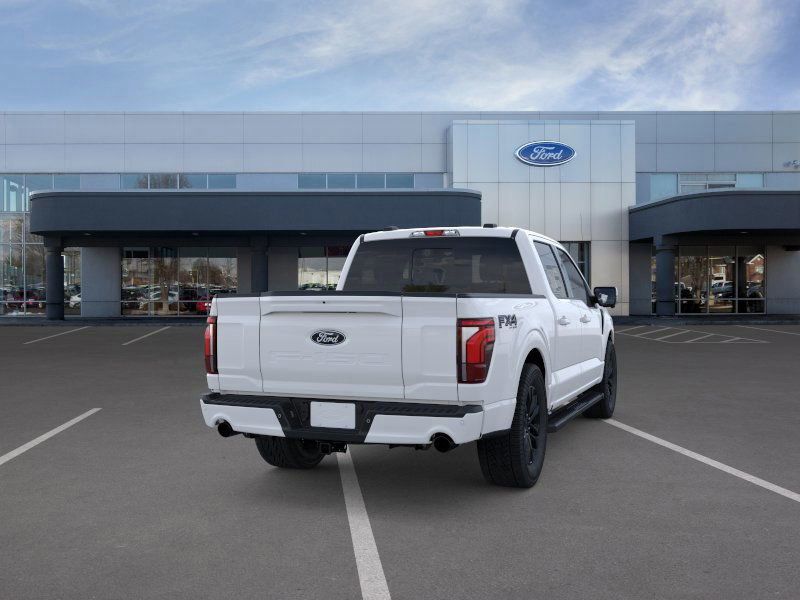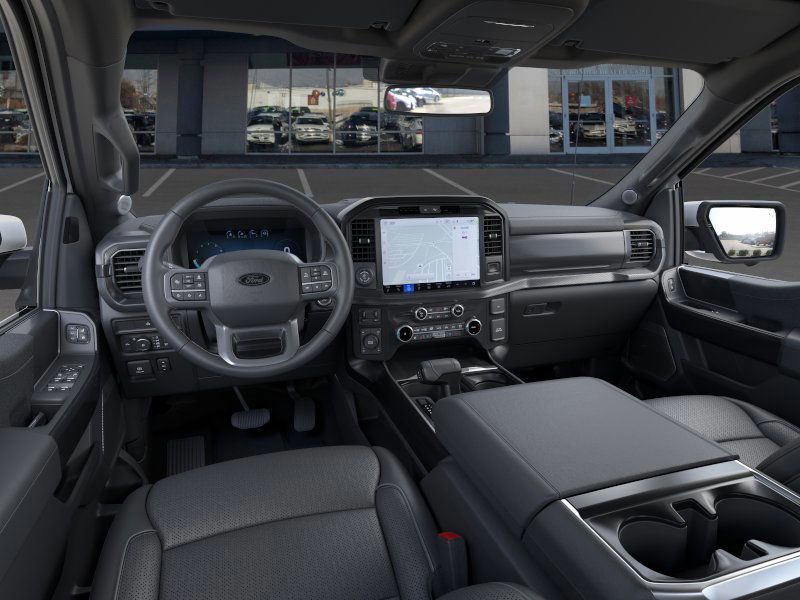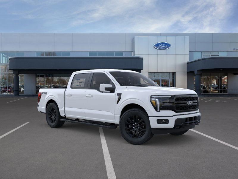 This 2025 Oxford White Ford F-150 Lariat 4WD is well equipped and includes these features and benefits: Bed Utility Package (4 Pickup Box Tie-Down Plates, LED Box Lighting, Power Tailgate, and Pro Access Tailgate), Equipment Group 501A Mid (6" Angular Bright Anodized Step Bar, Illuminated Driver & Passenger Visors, Power-Sliding Rear Window, and Wheels: 20" Chrome-Like PVD), FX4 Off-Road Package (4x4 FX4 Off-Road Bodyside Decal, Hill Descent Control, Monotube Rear Shocks, Off-Road Tuned Front Shock Absorbers, Rock Crawl Mode, and Tray Style Floor Liner w/o Carpet Mats), Tow/Haul Package, 4WD, 4-Wheel Disc Brakes, 6" Extended Running Boards, 8 Speakers, ABS brakes, ActiveX Trimmed Bucket Seats, Adjustable pedals, Air Conditioning, Alloy wheels, AM/FM radio: SiriusXM with 360L, Auto High-beam Headlights, Auto-dimming door mirrors, Auto-dimming Rear-View mirror, Automatic temperature control, Brake assist, Bumpers: chrome, Chrome wheels, Compass, Delay-off headlights, Driver door bin, Driver vanity mirror, Dual front impact airbags, Dual front side impact airbags, Electronic Stability Control, Emergency communication system: SYNC 4 911 Assist, Front anti-roll bar, Front Bucket Seats, Front Center Armrest, Front dual zone A/C, Front fog lights, Front License Plate Bracket, Front reading lights, Front wheel independent suspension, Fully automatic headlights, Garage door transmitter, Heated door mirrors, Heated front seats, Heated steering wheel, Illuminated entry, Internet access capable: FordPass Connect 5G, Low tire pressure warning, Memory seat, Navigation system: Connected Navigation, Occupant sensing airbag, Outside temperature display, Overhead airbag, Overhead console, Panic alarm, Passenger door bin, Passenger vanity mirror, Pedal memory, Power door mirrors, Power driver seat, Power passenger seat, Power steering, Power windows, Radio data system, Radio: B&O Sound System by Bang & Olufsen, Rain sensing wipers, Rear reading lights, Rear seat center armrest, Rear step bumper, Rear window defroster, Remote keyless entry, Security system, Speed control, Split folding rear seat, Steering wheel mounted audio controls, SYNC 4 w/Enhanced Voice Recognition, Tachometer, Telescoping steering wheel, Tilt steering wheel, Traction control, Trip computer, Turn signal indicator mirrors, Variably intermittent wipers, Ventilated front seats, Voltmeter, and Wheels: 18" Chrome-Like PVD.