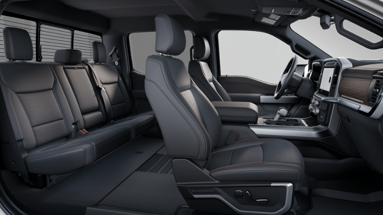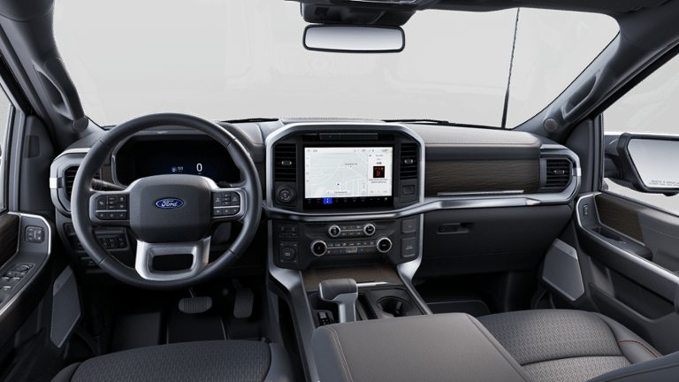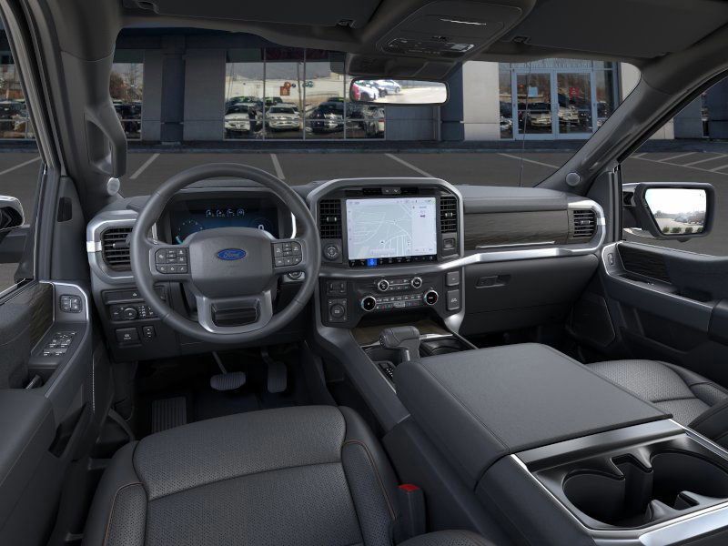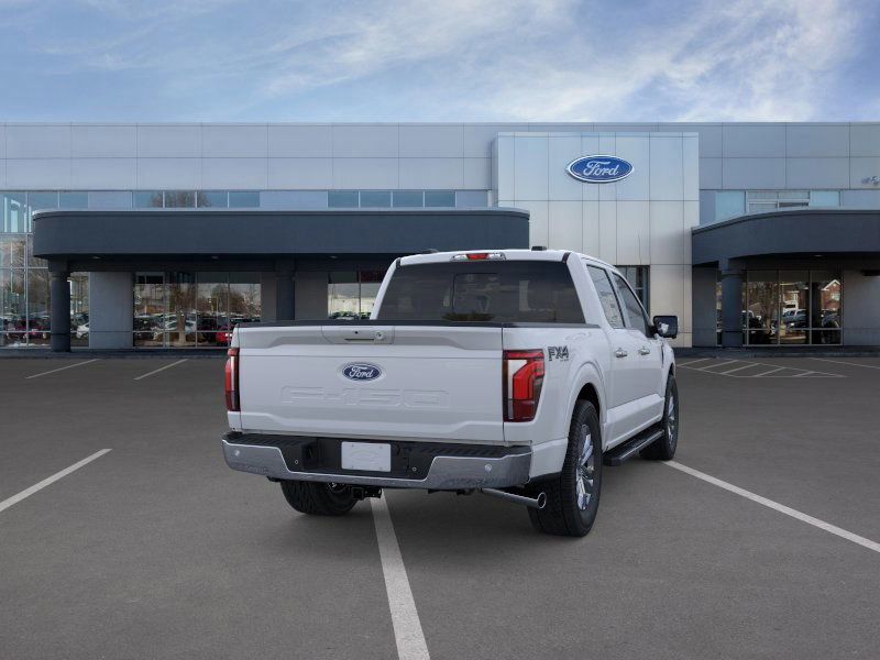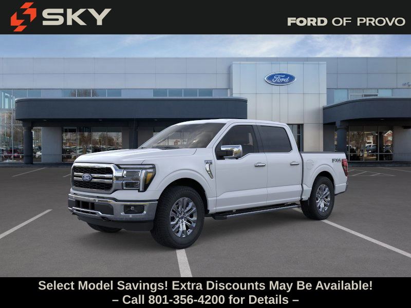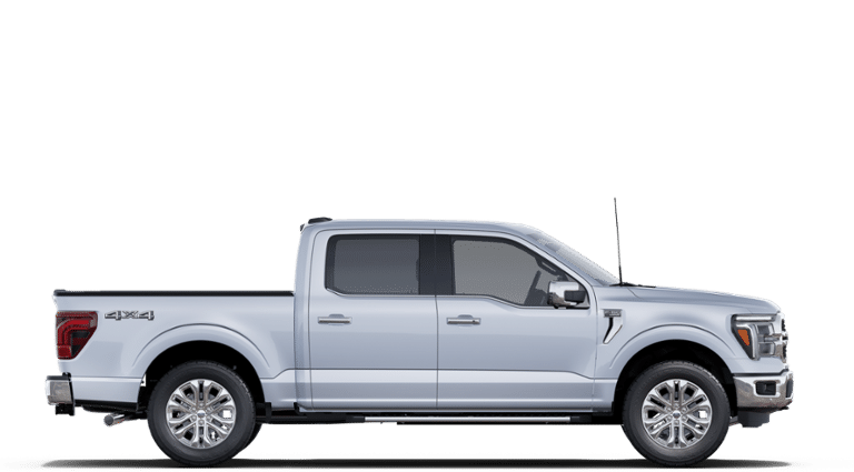 This 2025 Space White Metallic Ford F-150 Lariat 4WD is well equipped and includes these features and benefits: Equipment Group 501A Mid (6" Angular Bright Anodized Step Bar, Illuminated Driver & Passenger Visors, Power-Sliding Rear Window, and Wheels: 20" Chrome-Like PVD), FX4 Off-Road Package (4x4 FX4 Off-Road Bodyside Decal, Hill Descent Control, Monotube Rear Shocks, Off-Road Tuned Front Shock Absorbers, Rock Crawl Mode, and Tray Style Floor Liner w/o Carpet Mats), Tow/Haul Package, 4WD, 4-Wheel Disc Brakes, 8 Speakers, ABS brakes, ActiveX Trimmed Bucket Seats, Adjustable pedals, Air Conditioning, Alloy wheels, AM/FM radio: SiriusXM with 360L, Auto High-beam Headlights, Auto-dimming door mirrors, Auto-dimming Rear-View mirror, Automatic temperature control, Brake assist, Bumpers: chrome, Chrome wheels, Compass, Delay-off headlights, Driver door bin, Driver vanity mirror, Dual front impact airbags, Dual front side impact airbags, Electronic Stability Control, Emergency communication system: SYNC 4 911 Assist, Front anti-roll bar, Front Bucket Seats, Front Center Armrest, Front dual zone A/C, Front fog lights, Front License Plate Bracket, Front reading lights, Front wheel independent suspension, Fully automatic headlights, Garage door transmitter, Heated door mirrors, Heated front seats, Heated steering wheel, Illuminated entry, Internet access capable: FordPass Connect 5G, Low tire pressure warning, Memory seat, Navigation system: Connected Navigation, Occupant sensing airbag, Outside temperature display, Overhead airbag, Overhead console, Panic alarm, Passenger door bin, Passenger vanity mirror, Pedal memory, Power door mirrors, Power driver seat, Power passenger seat, Power steering, Power windows, Radio data system, Radio: B&O Sound System by Bang & Olufsen, Rain sensing wipers, Rear reading lights, Rear seat center armrest, Rear step bumper, Rear window defroster, Remote keyless entry, Security system, Speed control, Split folding rear seat, Steering wheel mounted audio controls, SYNC 4 w/Enhanced Voice Recognition, Tachometer, Telescoping steering wheel, Tilt steering wheel, Traction control, Trip computer, Turn signal indicator mirrors, Variably intermittent wipers, Ventilated front seats, Voltmeter, and Wheels: 18" Chrome-Like PVD.