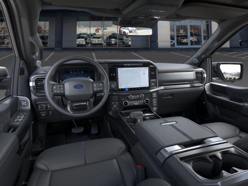 This 2025 Carbonized Gray Metallic Ford F-150 Platinum 4WD is well equipped and includes these features and benefits: Equipment Group 702A High, FX4 Off-Road Package (4x4 FX4 Off-Road Bodyside Decal, Hill Descent Control, Monotube Rear Shocks, Off-Road Tuned Front Shock Absorbers, and Rock Crawl Mode), 3.5L PowerBoost Full-Hybrid V6, 4WD, 4-Wheel Disc Brakes, 8 Speakers, ABS brakes, Adjustable pedals, Air Conditioning, Alloy wheels, AM/FM radio: SiriusXM with 360L, Auto High-beam Headlights, Auto tilt-away steering wheel, Auto-dimming door mirrors, Auto-dimming Rear-View mirror, Automatic temperature control, Brake assist, Bumpers: body-color, Compass, Delay-off headlights, Driver door bin, Driver vanity mirror, Dual front impact airbags, Dual front side impact airbags, Electronic Stability Control, Emergency communication system: SYNC 4 911 Assist, Front anti-roll bar, Front Bucket Seats, Front Center Armrest, Front dual zone A/C, Front fog lights, Front License Plate Bracket, Front reading lights, Front wheel independent suspension, Fully automatic headlights, Garage door transmitter, Heated door mirrors, Heated front seats, Heated rear seats, Heated steering wheel, Illuminated entry, Internet access capable: FordPass Connect 5G, Leather steering wheel, Low tire pressure warning, Memory seat, Navigation system: Connected Navigation, Occupant sensing airbag, Outside temperature display, Overhead airbag, Overhead console, Panic alarm, Passenger door bin, Passenger vanity mirror, Pedal memory, Power door mirrors, Power driver seat, Power passenger seat, Power steering, Power windows, Radio data system, Radio: B&O Sound System by Bang & Olufsen, Rain sensing wipers, Rear reading lights, Rear seat center armrest, Rear step bumper, Rear window defroster, Remote keyless entry, Security system, Speed control, Split folding rear seat, Steering wheel memory, Steering wheel mounted audio controls, SYNC 4 w/Enhanced Voice Recognition, Tachometer, Telescoping steering wheel, Tilt steering wheel, Traction control, Tray Style Floor Liner, Trip computer, Turn signal indicator mirrors, Unique Multi-Contour Leather Bucket Seats, Variably intermittent wipers, Ventilated front seats, Voltmeter, and Wheels: 20" Painted Gloss Ebony Black.