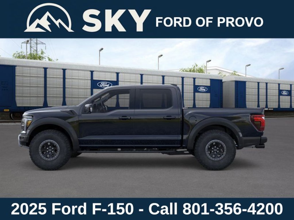 This 2025 Agate Black Metallic Ford F-150 Raptor 4WD is well equipped and includes these features and benefits: 4WD, 14 Speakers, 17" Cast Aluminum Wheels, 4-Wheel Disc Brakes, ABS brakes, Adjustable pedals, Air Conditioning, Alloy wheels, AM/FM radio: SiriusXM with 360L, Auto High-beam Headlights, Auto tilt-away steering wheel, Auto-dimming door mirrors, Auto-dimming Rear-View mirror, Automatic temperature control, Brake assist, Bumpers: body-color, Compass, Delay-off headlights, Driver door bin, Driver vanity mirror, Dual front impact airbags, Dual front side impact airbags, Electronic Locking w/4.10 Axle Ratio, Electronic Stability Control, Emergency communication system: SYNC 4 911 Assist, Front anti-roll bar, Front Bucket Seats, Front Center Armrest, Front dual zone A/C, Front fog lights, Front reading lights, Front wheel independent suspension, Fully automatic headlights, Garage door transmitter, Heads-Up Display, Heated door mirrors, Heated front seats, Heated rear seats, Heated steering wheel, Illuminated entry, Lane Departure Warning System, Leather steering wheel, Leather Trimmed Seats, Low tire pressure warning, Memory seat, Navigation system: Connected Navigation, Occupant sensing airbag, Outside temperature display, Overhead airbag, Overhead console, Panic alarm, Passenger door bin, Passenger vanity mirror, Pedal memory, Power door mirrors, Power driver seat, Power passenger seat, Power steering, Power windows, Radio data system, Radio: B&O Unleashed Sound System by Bang & Olufsen, Rain sensing wipers, Rear reading lights, Rear step bumper, Rear window defroster, Remote keyless entry, Security system, Speed control, Speed-sensing steering, Split folding rear seat, Steering wheel memory, Steering wheel mounted audio controls, SYNC 4 w/Enhanced Voice Recognition, Tachometer, Telescoping steering wheel, Tilt steering wheel, Traction control, Trip computer, Turn signal indicator mirrors, Variably intermittent wipers, and Ventilated front seats.