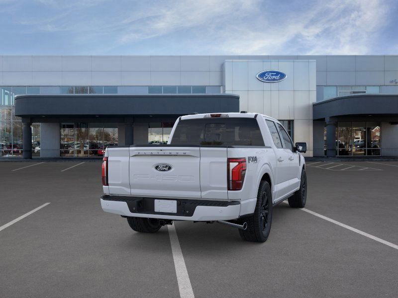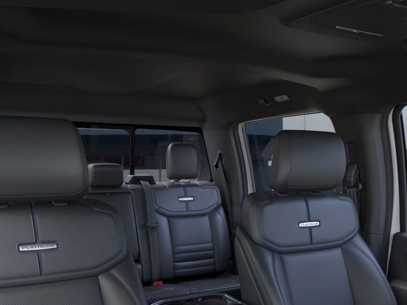 This 2025 Space White Metallic Ford F-150 Platinum 4WD is well equipped and includes these features and benefits: 4WD, 4-Wheel Disc Brakes, 8 Speakers, ABS brakes, Adjustable pedals, Air Conditioning, Alloy wheels, AM/FM radio: SiriusXM with 360L, Auto High-beam Headlights, Auto tilt-away steering wheel, Auto-dimming door mirrors, Auto-dimming Rear-View mirror, Automatic temperature control, Brake assist, Bumpers: body-color, Compass, Delay-off headlights, Driver door bin, Driver vanity mirror, Dual front impact airbags, Dual front side impact airbags, Electronic Locking w/3.55 Axle Ratio, Electronic Stability Control, Emergency communication system: SYNC 4 911 Assist, Front anti-roll bar, Front Bucket Seats, Front Center Armrest, Front dual zone A/C, Front fog lights, Front reading lights, Front wheel independent suspension, Fully automatic headlights, Garage door transmitter, Heated door mirrors, Heated front seats, Heated rear seats, Heated steering wheel, Illuminated entry, Internet access capable: FordPass Connect 5G, Leather steering wheel, Low tire pressure warning, Memory seat, Navigation system: Connected Navigation, Occupant sensing airbag, Outside temperature display, Overhead airbag, Overhead console, Panic alarm, Passenger door bin, Passenger vanity mirror, Pedal memory, Power door mirrors, Power driver seat, Power passenger seat, Power steering, Power windows, Radio data system, Radio: B&O Sound System by Bang & Olufsen, Rain sensing wipers, Rear reading lights, Rear seat center armrest, Rear step bumper, Rear window defroster, Remote keyless entry, Security system, Speed control, Split folding rear seat, Steering wheel memory, Steering wheel mounted audio controls, SYNC 4 w/Enhanced Voice Recognition, Tachometer, Telescoping steering wheel, Tilt steering wheel, Traction control, Trip computer, Turn signal indicator mirrors, Unique Multi-Contour Leather Bucket Seats, Variably intermittent wipers, Ventilated front seats, Voltmeter, and Wheels: 20" Painted Gloss Ebony Black.