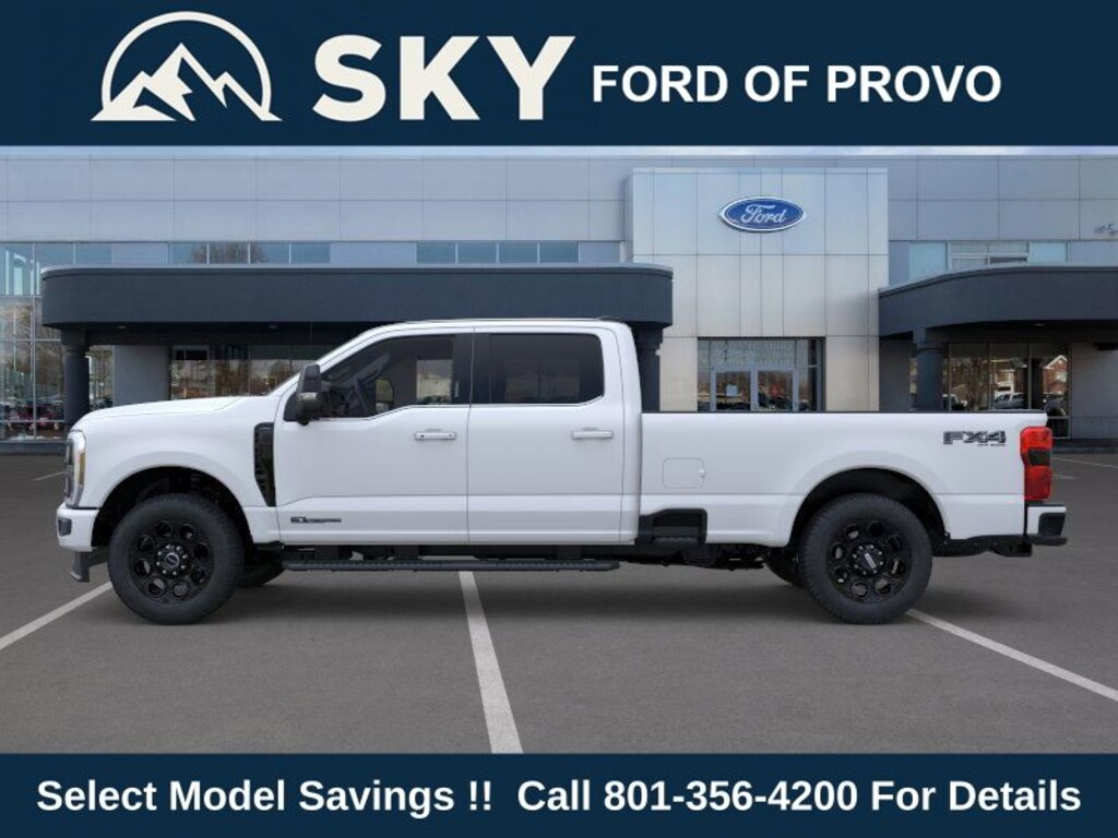 This 2025 Star White Metallic Tri-Coat Ford F-350 SuperDuty Lariat 4WD is well equipped and includes these features and benefits: 5th Wheel/Gooseneck Hitch Prep Package, Black Appearance Package (6" Ebony Black Angular Running Boards, Black Painted Front Grille Surround, Body Color Front & Rear Bumpers, Ebony Black Painted Mirror Caps, Rear Wheel Well Liners (Pre-Installed), Tough Bed Spray-In Bedliner, and Wheels: 20" Machined & Ebony Black High Gloss), FX4 Off-Road Package (Hill Descent Control, Off-Road Specifically Tuned Shock Absorbers, and Unique FX4 Off-Road Box Decal), Order Code 618A, 4WD, 190 Amp Alternator, 4-Wheel Disc Brakes, 410 Amp Dual Alternators, 8 Speakers, ABS brakes, Adjustable pedals, Air Conditioning, Alloy wheels, AM/FM radio: SiriusXM with 360L, Auto High-beam Headlights, Auto-dimming Rear-View mirror, Automatic temperature control, BLIS w/Cross-Traffic Alert, Brake assist, Bumpers: chrome, Compass, Delay-off headlights, Driver door bin, Driver vanity mirror, Dual AGM 68 AH Battery, Dual front impact airbags, Dual front side impact airbags, Electronic Stability Control, Emergency communication system: SYNC 4 911 Assist, Engine Block Heater, Flow-Through Console, Front ActiveX Trimmed 40/20/40 Split Bench Seat, Front ActiveX Trimmed 40/Console/40 Seats, Front anti-roll bar, Front Bucket Seats, Front Center Armrest, Front dual zone A/C, Front fog lights, Front License Plate Bracket, Front reading lights, Fully automatic headlights, Garage door transmitter, Heated door mirrors, Heated front seats, Heated rear seats, Heated steering wheel, Illuminated entry, Low tire pressure warning, Memory seat, Navigation System, Outside temperature display, Overhead airbag, Overhead console, Panic alarm, Passenger door bin, Passenger vanity mirror, Pedal memory, Power door mirrors, Power driver seat, Power passenger seat, Power steering, Power windows, Power-Sliding Rear-Window w/Defrost, Privacy Glass, Radio: B&O Sound System by Bang & Olufsen, Rain sensing wipers, Rapid-Heat Supplemental Cab Heater, Rear Parking Sensors, Rear reading lights, Rear seat center armrest, Rear step bumper, Rear window defroster, Remote keyless entry, Security system, SiriusXM Radio w/360L, Speed control, Split folding rear seat, Steering wheel mounted audio controls, SYNC 4 w/Enhanced Voice Recognition, Tachometer, Tailgate Step & Handle, Telescoping steering wheel, Tilt steering wheel, Traction control, Trip computer, Turn signal indicator mirrors, Upfitter Switches (6), Variably intermittent wipers, Ventilated front seats, and Wheels: 18" Bright Machined & Carbonized Gray Alum.
