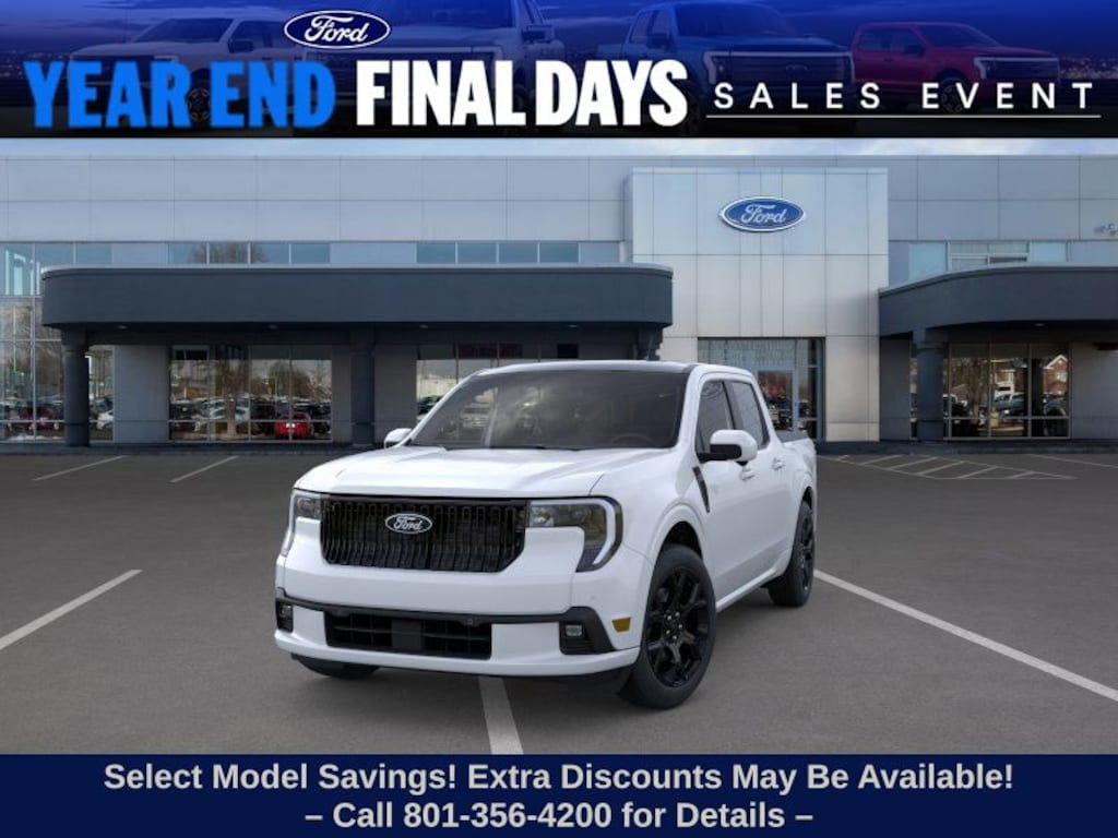 This 2025 Oxford White Ford Maverick Lobo High AWD is well equipped and includes these features and benefits: Equipment Group 702A High (360-Degree Camera, 400W Inverter w/USB Console Rear, Acoustic Windshield, Adaptive Cruise Control (ACC) w/Stop & Go, Ambient Lighting & LED Box Lighting, Auto High Beams, Bed Tie Down Locking Rails w/2 Locking Brackets, Blind Spot Assist, Driver/Passenger Illuminated Visors, Dual-Zone Electronic Automatic Temperature Control, Electric Sound Enhancement, Evasive Steering Assist, Ford Co-Pilot Assist 2.0, Front & Rear All-Weather Floor Liners, Front Parking Sensors, Heated Seats, Heated Steering Wheel, Intersection Assist, Lane-Keeping System, Post-Collision Braking, Power Moonroof, Power-Sliding Rear Window, Predictive Speed Assist, Pro Trailer Backup Assist, Pro Trailer Hitch Assist, Rear Parking Sensor, Reverse Brake Assist, Tough Bed Spray-In Bedliner, and Wireless Charging Pad), 3.63 Axle Ratio, 4-Wheel Disc Brakes, 8 Speakers, ABS brakes, ActiveX Trimmed Front Bucket Seats, Air Conditioning, Alloy wheels, AM/FM radio: SiriusXM with 360L, Apple CarPlay/Android Auto, Auto High-beam Headlights, Automatic temperature control, Brake assist, Bumpers: body-color, Compass, Delay-off headlights, Driver door bin, Driver vanity mirror, Dual front impact airbags, Dual front side impact airbags, Electronic Stability Control, Emergency communication system: SYNC 4 911 Assist, Exterior Parking Camera Rear, Four wheel independent suspension, Front anti-roll bar, Front Bucket Seats, Front Center Armrest, Front dual zone A/C, Front fog lights, Front reading lights, Fully automatic headlights, Heated front seats, Heated steering wheel, Illuminated entry, Knee airbag, Low tire pressure warning, Navigation system: Connected Navigation, Occupant sensing airbag, Outside temperature display, Overhead airbag, Overhead console, Panic alarm, Passenger door bin, Passenger vanity mirror, Power door mirrors, Power driver seat, Power moonroof, Power steering, Power windows, Radio data system, Radio: B&O Sound System by Bang & Olufsen, Rear anti-roll bar, Rear seat center armrest, Rear step bumper, Remote keyless entry, Security system, SiriusXM w/360L, Speed control, Speed-sensing steering, Steering wheel mounted audio controls, SYNC 4 w/Enhanced Voice Recognition, Tachometer, Telescoping steering wheel, Tilt steering wheel, Traction control, Trip computer, Wheels: 19" Black Painted Aluminum, and Wheels: 19" Turbofan-styled Black Painted Aluminum.
