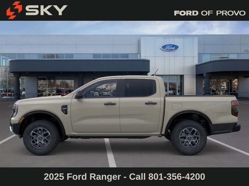 This 2025 Desert Sand Ford Ranger XLT 4WD is well equipped and includes these features and benefits: Sport Appearance Package (Gray Painted Center Bar & Grille Surround, Gray Painted Front Fascia & Rear Bumper, and Sport Box Decal), 4WD, 3.73 Axle Ratio, 4-Wheel Disc Brakes, 6 Speakers, ABS brakes, Air Conditioning, Alloy wheels, AM/FM radio: SiriusXM, AM/FM Stereo, Auto High-beam Headlights, Auto-dimming Rear-View mirror, Brake assist, Cloth Front Bucket Seats, Compass, Delay-off headlights, Driver door bin, Driver vanity mirror, Dual front impact airbags, Dual front side impact airbags, Electronic Stability Control, Emergency communication system: SYNC 4 911 Assist, Front anti-roll bar, Front Bucket Seats, Front Center Armrest, Front fog lights, Front reading lights, Front wheel independent suspension, Fully automatic headlights, Illuminated entry, Internet access capable: FordPass Connect 4G, Leather Shift Knob, Low tire pressure warning, Navigation system: Connected Navigation, Occupant sensing airbag, Outside temperature display, Overhead airbag, Overhead console, Panic alarm, Passenger door bin, Passenger vanity mirror, Power door mirrors, Power steering, Power windows, Rear reading lights, Rear seat center armrest, Rear step bumper, Rear window defroster, Remote keyless entry, Security system, SiriusXM Satellite Radio, Speed control, Speed-sensing steering, Steering wheel mounted audio controls, SYNC 4A w/Connected Navigation, Telescoping steering wheel, Tilt steering wheel, Traction control, Trip computer, Variably intermittent wipers, Voltmeter, and Wheels: 17" Gray-Painted Aluminum.