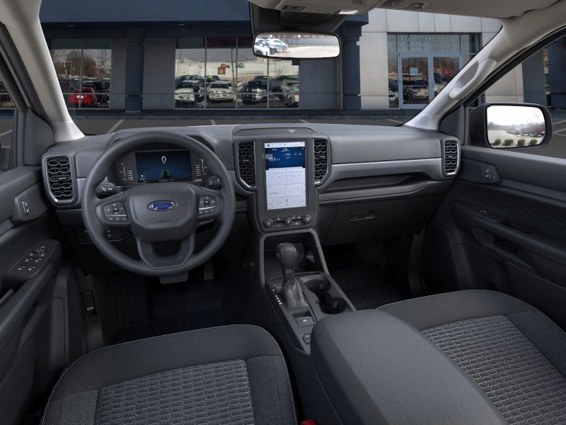 This 2025 Oxford White Ford Ranger XL 4WD is well equipped and includes these features and benefits: STX Appearance Package (Halogen Fog Lamps, LED Reflector Headlamps, and STX Fender Badge), 4WD, 3.73 Axle Ratio, 4-Wheel Disc Brakes, 6 Speakers, ABS brakes, Air Conditioning, Alloy wheels, AM/FM radio, AM/FM Stereo, Auto High-beam Headlights, Brake assist, Bumpers: body-color, Cloth Front Bucket Seats, Compass, Delay-off headlights, Driver door bin, Dual front impact airbags, Dual front side impact airbags, Electronic Stability Control, Emergency communication system: SYNC 4 911 Assist, Front anti-roll bar, Front Bucket Seats, Front Center Armrest, Front fog lights, Front reading lights, Front wheel independent suspension, Fully automatic headlights, Illuminated entry, Internet access capable: FordPass Connect 4G, Low tire pressure warning, Occupant sensing airbag, Outside temperature display, Overhead airbag, Overhead console, Panic alarm, Passenger door bin, Power door mirrors, Power steering, Power windows, Rear reading lights, Rear seat center armrest, Rear step bumper, Remote keyless entry, Security system, Speed control, Speed-sensing steering, Steering wheel mounted audio controls, SYNC 4A, Telescoping steering wheel, Tilt steering wheel, Traction control, Trip computer, Variably intermittent wipers, Voltmeter, and Wheels: 17" Silver-Painted Aluminum.
