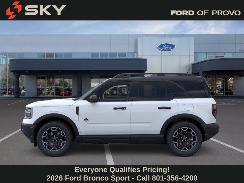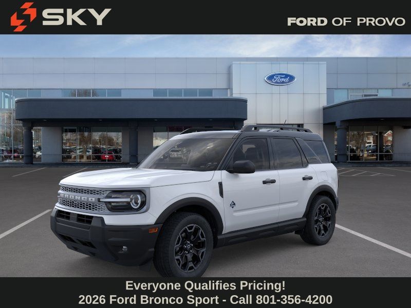This 2026 Oxford White Ford Bronco Sport Outer Banks 4WD is well equipped and includes these features and benefits: Ford Connectivity Package (1-Year Included), Internet access capable: 5G Modem - Ford Connectivity Package, 4-Wheel Disc Brakes, 6 Speakers, ABS brakes, Air Conditioning, Alloy wheels, AM/FM radio: SiriusXM with 360L, AM/FM Stereo, Apple CarPlay/Android Auto, Auto High-beam Headlights, Auto-dimming Rear-View mirror, Automatic temperature control, Brake assist, Compass, Delay-off headlights, Driver door bin, Driver vanity mirror, Dual front impact airbags, Dual front side impact airbags, Electronic Stability Control, Emergency communication system: SYNC 4 911 Assist, Exterior Parking Camera Rear, Four wheel independent suspension, Front anti-roll bar, Front Bucket Seats, Front Center Armrest, Front Driver/Passenger Seat Back Map Pockets, Front dual zone A/C, Front fog lights, Front reading lights, Fully automatic headlights, Heated door mirrors, Heated front seats, Heated steering wheel, Illuminated entry, Knee airbag, Low tire pressure warning, Memory seat, Occupant sensing airbag, Outside temperature display, Overhead airbag, Overhead console, Panic alarm, Passenger door bin, Passenger vanity mirror, Power door mirrors, Power driver seat, Power passenger seat, Power steering, Power windows, Radio data system, Rear anti-roll bar, Rear Parking Sensors, Rear reading lights, Rear seat center armrest, Rear window defroster, Rear window wiper, Remote keyless entry, Security system, SiriusXM with 360L, Speed control, Speed-sensing steering, Speed-Sensitive Wipers, Split folding rear seat, Steering wheel mounted audio controls, SYNC 4 with Enhanced Voice Recognition, Tachometer, Telescoping steering wheel, Tilt steering wheel, Traction control, Trip computer, Variably intermittent wipers, and Wheels: 18" Ebony Black.