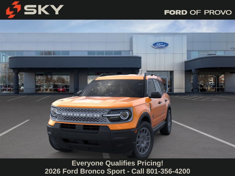 This 2026 Orange Fury Metallic Tri-Coat Ford Bronco Sport Big Bend 4WD is well equipped and includes these features and benefits: Ford Connectivity Package (1-Year Included), Internet access capable: 5G Modem - Ford Connectivity Package, 4-Wheel Disc Brakes, 6 Speakers, ABS brakes, Air Conditioning, Alloy wheels, AM/FM radio: SiriusXM with 360L, AM/FM Stereo, Apple CarPlay/Android Auto, Auto High-beam Headlights, Automatic temperature control, Brake assist, Cloth with Easy-to-Clean Front Bucket Seats, Compass, Delay-off headlights, Driver door bin, Driver vanity mirror, Dual front impact airbags, Dual front side impact airbags, Electronic Stability Control, Emergency communication system: SYNC 4 911 Assist, Exterior Parking Camera Rear, Four wheel independent suspension, Front anti-roll bar, Front Bucket Seats, Front Center Armrest, Front reading lights, Fully automatic headlights, Heated door mirrors, Illuminated entry, Knee airbag, Low tire pressure warning, Occupant sensing airbag, Outside temperature display, Overhead airbag, Overhead console, Panic alarm, Passenger door bin, Passenger vanity mirror, Power door mirrors, Power steering, Power windows, Radio data system, Rear anti-roll bar, Rear Parking Sensors, Rear reading lights, Rear seat center armrest, Rear window defroster, Rear window wiper, Remote keyless entry, Security system, SiriusXM with 360L, Speed control, Speed-sensing steering, Speed-Sensitive Wipers, Split folding rear seat, Steering wheel mounted audio controls, SYNC 4 with Enhanced Voice Recognition, Tachometer, Telescoping steering wheel, Tilt steering wheel, Traction control, Trip computer, Variably intermittent wipers, and Wheels: 17" Carbonized Gray Painted Aluminum.