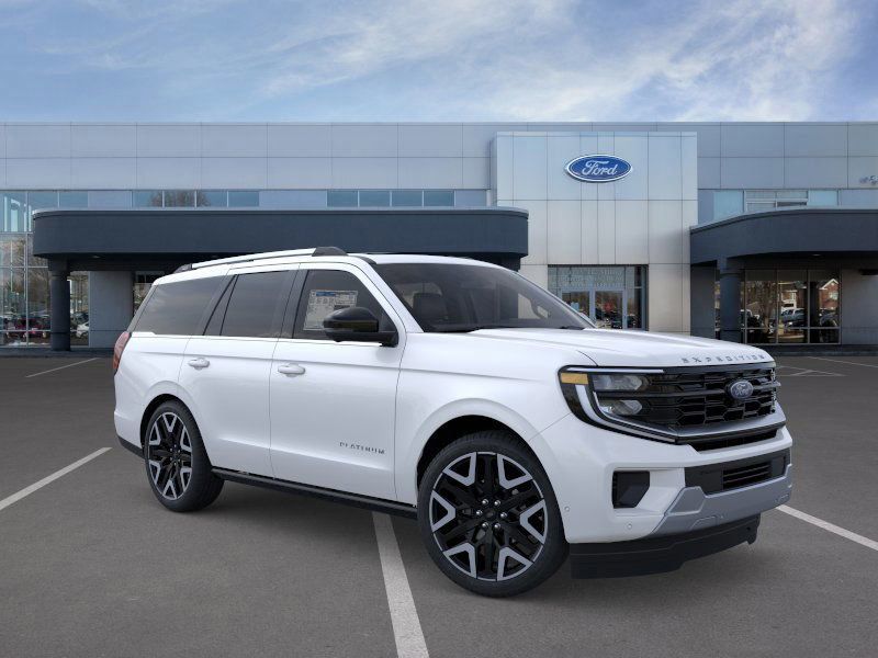 This 2026 Star White Metallic Tri-Coat Ford Expedition Platinum 4WD is well equipped and includes these features and benefits: Ford Connectivity Package (1-Year Included), 4WD, 10 Speakers, 2nd Row Power-Folding Captain's Chairs, 3.73 Axle Ratio, 3rd row seats: split-bench, 4-Wheel Disc Brakes, ABS brakes, Air Conditioning, Alloy wheels, AM/FM radio: SiriusXM with 360L, Apple CarPlay/Android Auto, Auto High-beam Headlights, Auto-dimming door mirrors, Auto-dimming Rear-View mirror, Automatic temperature control, Brake assist, Bumpers: body-color, Compass, Delay-off headlights, Driver door bin, Driver vanity mirror, Dual front impact airbags, Dual front side impact airbags, Electronic Stability Control, Emergency communication system: 911 Assist, Exterior Parking Camera Rear, Ford Digital Experience, Four wheel independent suspension, Front anti-roll bar, Front Bucket Seats, Front Center Armrest, Front dual zone A/C, Front reading lights, Fully automatic headlights, Garage door transmitter, Genuine wood dashboard insert, Genuine wood door panel insert, Heated and Ventilated Leather Front Captain's Chairs, Heated door mirrors, Heated front seats, Heated rear seats, Heated steering wheel, Illuminated entry, Leather steering wheel, Low tire pressure warning, Memory seat, Navigation System, Occupant sensing airbag, Outside temperature display, Overhead airbag, Overhead console, Panic alarm, Passenger door bin, Passenger vanity mirror, Power door mirrors, Power driver seat, Power moonroof: Vista Roof, Power passenger seat, Power steering, Power windows, Radio data system, Radio: B&O Sound System by Bang and Olufsen, Rain sensing wipers, Rear air conditioning, Rear anti-roll bar, Rear reading lights, Rear window defroster, Rear window wiper, Reclining 3rd row seat, Remote keyless entry, Security system, SiriusXM with 360L, Speed control, Speed-sensing steering, Speed-Sensitive Wipers, Split folding rear seat, Spoiler, Steering wheel memory, Steering wheel mounted audio controls, Tachometer, Telescoping steering wheel, Tilt steering wheel, Traction control, Trip computer, Turn signal indicator mirrors, Variably intermittent wipers, Ventilated front seats, Voltmeter, and Wheels: 20" x 8.5" Ebony Bright Machined Aluminum.