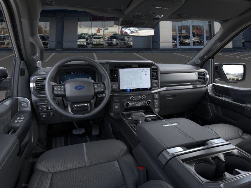 This 2026 Agate Black Metallic Ford F-150 Platinum 4WD is well equipped and includes these features and benefits: Ford Connectivity Package (1-Year Included), Internet access capable: 5G Modem - Ford Connectivity Package, 3.5L PowerBoost Full-Hybrid V6, 4WD, 4-Wheel Disc Brakes, 8 Speakers, ABS brakes, Adjustable pedals, Air Conditioning, Alloy wheels, AM/FM radio: SiriusXM with 360L, Auto High-beam Headlights, Auto tilt-away steering wheel, Auto-dimming door mirrors, Auto-dimming Rear-View mirror, Automatic temperature control, Brake assist, Bumpers: body-color, Compass, Delay-off headlights, Driver door bin, Driver vanity mirror, Dual front impact airbags, Dual front side impact airbags, Electronic Locking with 3.55 Axle Ratio, Electronic Stability Control, Emergency communication system: SYNC 4 911 Assist, Front anti-roll bar, Front Bucket Seats, Front Center Armrest, Front dual zone A/C, Front fog lights, Front reading lights, Front wheel independent suspension, Fully automatic headlights, Garage door transmitter, Heated door mirrors, Heated front seats, Heated rear seats, Heated steering wheel, Illuminated entry, Leather steering wheel, Low tire pressure warning, Memory seat, Navigation system: Connected Navigation, Occupant sensing airbag, Outside temperature display, Overhead airbag, Overhead console, Panic alarm, Passenger door bin, Passenger vanity mirror, Pedal memory, Power door mirrors, Power driver seat, Power passenger seat, Power steering, Power windows, Radio data system, Radio: B&O Sound System by Bang and Olufsen, Rain sensing wipers, Rear reading lights, Rear seat center armrest, Rear step bumper, Rear window defroster, Remote keyless entry, Security system, Speed control, Split folding rear seat, Steering wheel memory, Steering wheel mounted audio controls, SYNC 4 with Enhanced Voice Recognition, Tachometer, Telescoping steering wheel, Tilt steering wheel, Traction control, Trip computer, Turn signal indicator mirrors, Unique Multi-Contour Leather Bucket Seats, Variably intermittent wipers, Ventilated front seats, and Wheels: 20" Painted Gloss Ebony Black.