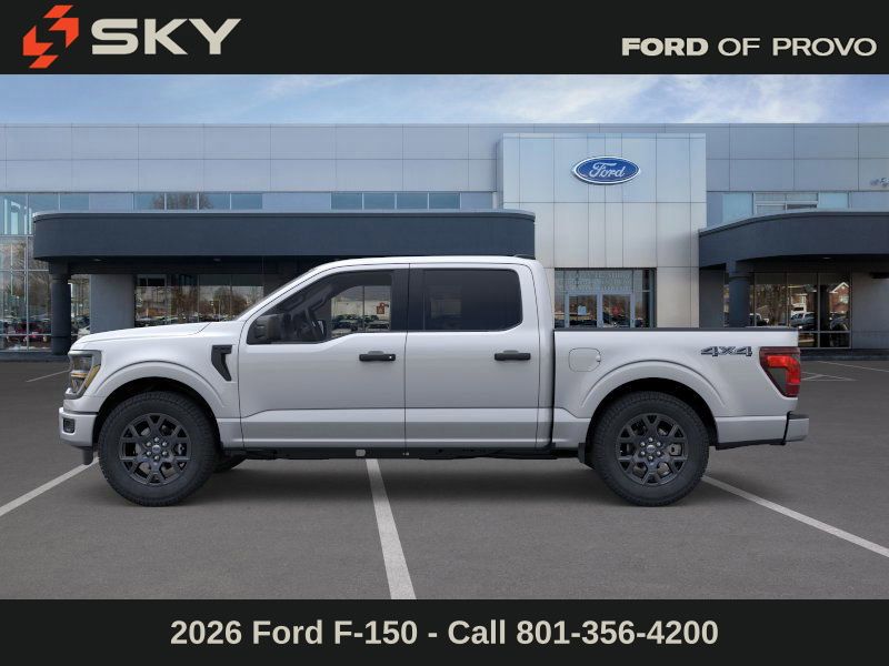 This 2026 Iconic Silver Metallic Ford F-150 STX 4WD is well equipped and includes these features and benefits: Equipment Group 200A Mid (12" Cluster Display, LED Fog Lamps with LED Cornering Lamp, Radio: AM/FM Stereo with SiriusXM 360L, SYNC 4 with Enhanced Voice Recognition, Unique Sport Cloth 40/Console/40 Front-Seats, and Wheels: 20" Dark Gray Aluminum), Ford Connectivity Package (1-Year Included), Ford Connectivity Package (one-Time Purchase - 7 Years), GVWR: 6,650 lbs Payload Package, Internet access capable: 5G Modem - Ford Connectivity Package, 4WD, 4-Wheel Disc Brakes, 6 Speakers, ABS brakes, Air Conditioning, Alloy wheels, AM/FM radio: SiriusXM with 360L, Auto High-beam Headlights, Brake assist, Bumpers: body-color, Compass, Delay-off headlights, Driver door bin, Dual front impact airbags, Dual front side impact airbags, Electronic Stability Control, Emergency communication system: SYNC 4 911 Assist, Front anti-roll bar, Front Bucket Seats, Front Center Armrest, Front reading lights, Front wheel independent suspension, Fully automatic headlights, Heated door mirrors, Illuminated entry, Integrated Trailer Brake Controller, Low tire pressure warning, Occupant sensing airbag, Outside temperature display, Overhead airbag, Overhead console, Panic alarm, Passenger door bin, Passenger vanity mirror, Power door mirrors, Power steering, Power windows, Radio data system, Rear Parking Sensors, Rear step bumper, Rear window defroster, Remote keyless entry, Security system, SiriusXM with 360L (3-Year Plan), Speed control, Split folding rear seat, Steering wheel mounted audio controls, Tachometer, Telescoping steering wheel, Tilt steering wheel, Traction control, Trip computer, Variably intermittent wipers, and Wheels: 18" Gloss Black.
