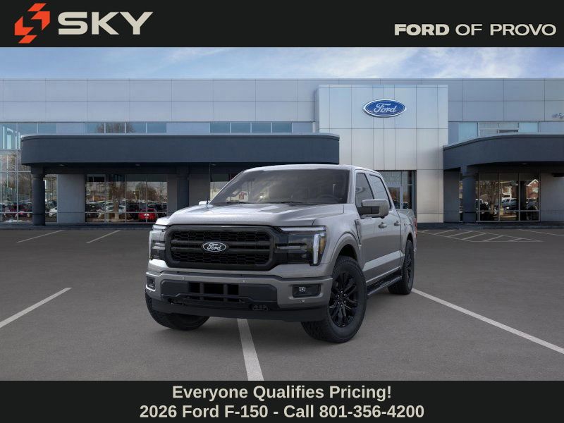 This 2026 Gray Metallic Ford F-150 Lariat 4WD is well equipped and includes these features and benefits: Equipment Group 501A Mid (3.31 Axle Ratio, ActiveX Trimmed Bucket Seats, Illuminated Driver and Passenger Visors, Power-Adjustable Pedals with Memory, Power-Sliding Rear Window, Radio: B&O Sound System by Bang and Olufsen, SYNC 4 with Enhanced Voice Recognition, and Wheels: 20" Chrome-Like PVD), Ford Connectivity Package (1-Year Included), Internet access capable: 5G Modem - Ford Connectivity Package, Lariat Black Appearance Package (Black Exterior Badging, Black Grille, Black Taillamp Bezels, Body-Color Front and Rear Bumpers, Body-Color Skull Caps and Door Handles, Dark Interior Appliques, and Gray Box Side Decal), 4WD, 4-Wheel Disc Brakes, 8 Speakers, ABS brakes, Air Conditioning, Alloy wheels, AM/FM radio: SiriusXM with 360L, Auto High-beam Headlights, Auto-dimming door mirrors, Auto-dimming Rear-View mirror, Automatic temperature control, Brake assist, Bumpers: chrome, Chrome wheels, Compass, Delay-off headlights, Driver door bin, Driver vanity mirror, Dual front impact airbags, Dual front side impact airbags, Electronic Stability Control, Emergency communication system: SYNC 4 911 Assist, Front anti-roll bar, Front Bucket Seats, Front Center Armrest, Front dual zone A/C, Front fog lights, Front reading lights, Front wheel independent suspension, Fully automatic headlights, Garage door transmitter, Heated door mirrors, Heated front seats, Heated steering wheel, Illuminated entry, Low tire pressure warning, Memory seat, Navigation system: Connected Navigation, Occupant sensing airbag, Outside temperature display, Overhead airbag, Overhead console, Panic alarm, Passenger door bin, Passenger vanity mirror, Power door mirrors, Power driver seat, Power passenger seat, Power steering, Power windows, Radio data system, Rain sensing wipers, Rear reading lights, Rear seat center armrest, Rear step bumper, Rear window defroster, Remote keyless entry, Security system, Speed control, Split folding rear seat, Steering wheel mounted audio controls, Tachometer, Telescoping steering wheel, Tilt steering wheel, Tough Bed Spray-in Bedliner, Traction control, Trip computer, Turn signal indicator mirrors, Twin Panel Moonroof, Variably intermittent wipers, Ventilated front seats, and Wheels: 18" Chrome-Like PVD.