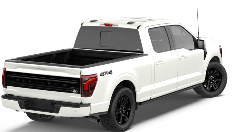 This 2026 Star White Metallic Tri-Coat Ford F-150 Platinum 4WD is well equipped and includes these features and benefits: Ford Connectivity Package (1-Year Included), GVWR: 7,400 lbs Payload Package, Internet access capable: 5G Modem - Ford Connectivity Package, 4WD, 4-Wheel Disc Brakes, 8 Speakers, ABS brakes, Adjustable pedals, Air Conditioning, Alloy wheels, AM/FM radio: SiriusXM with 360L, Auto High-beam Headlights, Auto tilt-away steering wheel, Auto-dimming door mirrors, Auto-dimming Rear-View mirror, Automatic temperature control, Brake assist, Bumpers: body-color, Compass, Delay-off headlights, Driver door bin, Driver vanity mirror, Dual front impact airbags, Dual front side impact airbags, Electronic Locking with 3.55 Axle Ratio, Electronic Stability Control, Emergency communication system: SYNC 4 911 Assist, Front anti-roll bar, Front Bucket Seats, Front Center Armrest, Front dual zone A/C, Front fog lights, Front reading lights, Front wheel independent suspension, Fully automatic headlights, Garage door transmitter, Heated door mirrors, Heated front seats, Heated rear seats, Heated steering wheel, Illuminated entry, Leather steering wheel, Low tire pressure warning, Memory seat, Navigation system: Connected Navigation, Occupant sensing airbag, Outside temperature display, Overhead airbag, Overhead console, Panic alarm, Passenger door bin, Passenger vanity mirror, Pedal memory, Power door mirrors, Power driver seat, Power passenger seat, Power steering, Power windows, Radio data system, Radio: B&O Sound System by Bang and Olufsen, Rain sensing wipers, Rear reading lights, Rear seat center armrest, Rear step bumper, Rear window defroster, Remote keyless entry, Security system, Speed control, Split folding rear seat, Steering wheel memory, Steering wheel mounted audio controls, SYNC 4 with Enhanced Voice Recognition, Tachometer, Telescoping steering wheel, Tilt steering wheel, Traction control, Trip computer, Turn signal indicator mirrors, Unique Multi-Contour Leather Bucket Seats, Variably intermittent wipers, Ventilated front seats, and Wheels: 20" Painted Gloss Ebony Black.