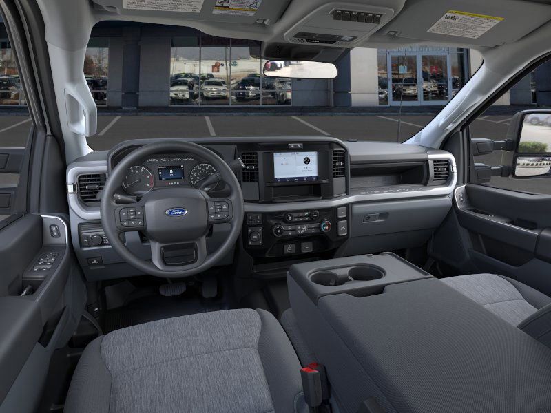 This 2026 Oxford White Ford F-250 SuperDuty XL 4WD is well equipped and includes these features and benefits: Ford Connectivity Package (1-Year Included), FX4 Off-Road Package (Hill Descent Control, Off-Road Specifically Tuned Shock Absorbers, and Unique FX4 Off-Road Box Decal), GVWR: 10,000 Lb Payload Package, Internet access capable: 5G Modem - Ford Connectivity Package, Order Code 600A (17" Argent Painted Steel Wheels, HD Vinyl 40/20/40 Split Bench Seat, Radio: AM/FM Stereo with MP3 Player, and SYNC 4), XL Driver Assist Package, 4WD, 190 Amp Alternator, 4-Wheel Disc Brakes, 6 Speakers, ABS brakes, Air Conditioning, AM/FM radio, Brake assist, Compass, Delay-off headlights, Dual AGM 68 AH Battery, Dual front impact airbags, Dual front side impact airbags, Electronic Stability Control, Emergency communication system: SYNC 4 911 Assist, Exterior Parking Camera Rear, Front anti-roll bar, Front Center Armrest w/Storage, Front License Plate Bracket, Front reading lights, Fully automatic headlights, Heated door mirrors, Illuminated entry, Low tire pressure warning, Outside temperature display, Overhead airbag, Overhead console, Panic alarm, Passenger cancellable airbag, Passenger vanity mirror, Platform Running Boards, Power door mirrors, Power steering, Power windows, Pro Power Onboard - 400W, Rear step bumper, Remote keyless entry, Security system, Speed control, Split folding rear seat, Steering wheel mounted audio controls, Tachometer, Telescoping steering wheel, Tilt steering wheel, Traction control, Trailer Brake Controller, Trip computer, Turn signal indicator mirrors, Upfitter Switches (6), and Variably intermittent wipers.