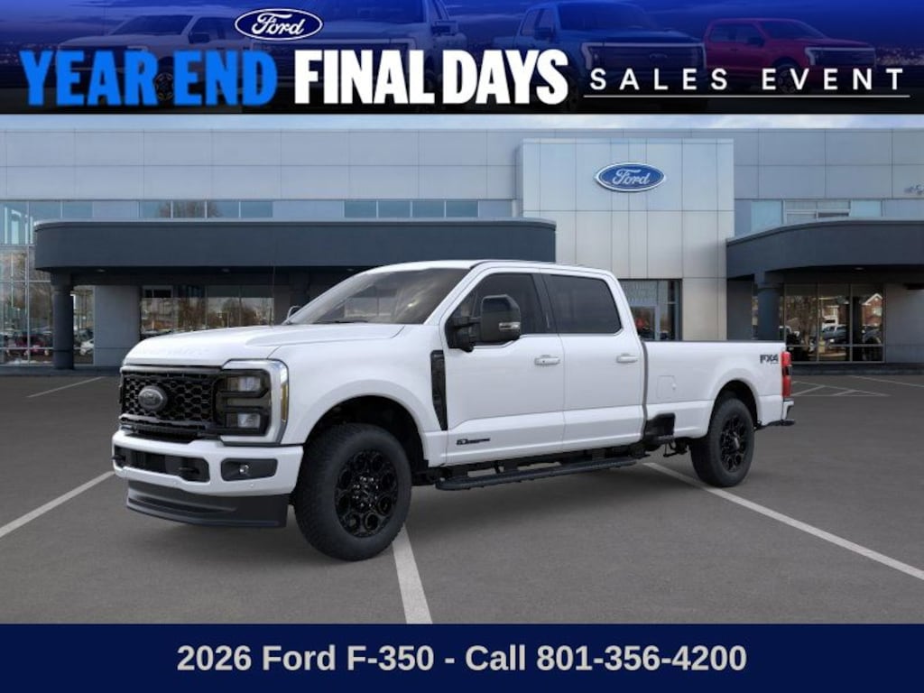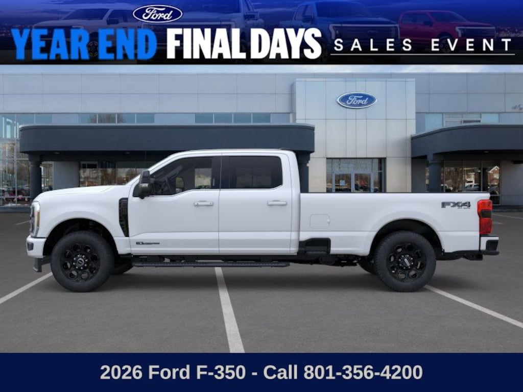 This 2026 Star White Metallic Tri-Coat Ford F-350 SuperDuty Lariat 4WD is well equipped and includes these features and benefits: 5th Wheel/Gooseneck Hitch Prep Package, Black Appearance Package (6" Ebony Black Angular Running Boards, Black Painted Front Grille Surround, Body Color Front & Rear Bumpers, Ebony Black Painted Mirror Caps, Rear Wheel Well Liners (Pre-Installed), Tough Bed Spray-In Bedliner, and Wheels: 20" Ebony Black High Gloss), Ford Connectivity Package (1-Year Included), FX4 Off-Road Package (Hill Descent Control, Off-Road Specifically Tuned Shock Absorbers, and Unique FX4 Off-Road Box Decal), Internet access capable: 5G Modem - Ford Connectivity Package, Lariat Premium Package (Lane Departure Warning System, Power-Sliding Rear-Window w/Defrost, Privacy Glass, Pro Trailer Backup Assist, and Pro Trailer Hitch Assist), Lariat Ultimate Package (4-Way Adjustable Headrests, Head-Up Display, Power-Deployable Running Boards, Radio: B&O Unleashed Sound System by Bang & Olufsen, SiriusXM w/360L, SYNC 4 w/Enhanced Voice Recognition, and Tailgate Step & Handle), Order Code 618A, 4WD, 190 Amp Alternator, 4-Wheel Disc Brakes, 410 Amp Dual Alternators, 8 Speakers, ABS brakes, Adaptive Cruise Control w/Stop-and-Go, Adjustable pedals, Air Conditioning, Alloy wheels, AM/FM radio: SiriusXM with 360L, Auto High-beam Headlights, Auto-dimming Rear-View mirror, Automatic High Beam, Automatic temperature control, BLIS w/Cross-Traffic Alert, Brake assist, Bumpers: chrome, Compass, Delay-off headlights, Driver door bin, Driver vanity mirror, Dual AGM 68 AH Battery, Dual front impact airbags, Dual front side impact airbags, Electronic Stability Control, Emergency communication system: SYNC 4 911 Assist, Engine Block Heater, Flow-Through Console, Front & Rear Parking Sensors, Front ActiveX Trimmed 40/Console/40 Seats, Front anti-roll bar, Front Bucket Seats, Front Center Armrest, Front dual zone A/C, Front fog lights, Front License Plate Bracket, Front reading lights, Fully automatic headlights, Garage door transmitter, Heated door mirrors, Heated front seats, Heated rear seats, Heated steering wheel, Illuminated entry, Lane-Keeping System, Low tire pressure warning, Memory seat, Navigation system: Connected Navigation, Outside temperature display, Overhead airbag, Overhead console, Panic alarm, Passenger door bin, Passenger vanity mirror, Pedal memory, Post-Collision Braking, Power door mirrors, Power driver seat, Power passenger seat, Power steering, Power windows, Pre-Collision Assist, Pro Power Onboard - 2kW, Radio: B&O Sound System by Bang & Olufsen, Rain sensing wipers, Rapid-Heat Supplemental Cab Heater, Rear Parking Sensors, Rear reading lights, Rear seat center armrest, Rear step bumper, Rear window defroster, Remote keyless entry, SecuriCode Keyless Entry Keypad (Driver's Side), Security system, Speed control, Split folding rear seat, Steering wheel mounted audio controls, Tachometer, Telescoping steering wheel, Tilt steering wheel, Traction control, Trip computer, Turn signal indicator mirrors, Twin Panel Power Moonroof, Upfitter Switches (6), Variably intermittent wipers, Ventilated front seats, and Wheels: 18" Bright Machined & Carbonized Gray Alum.