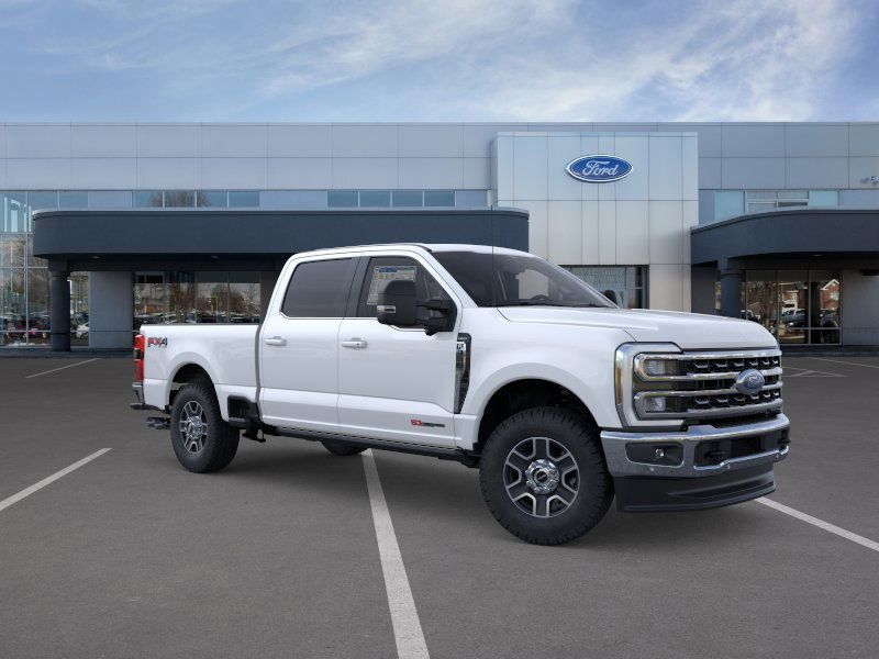 This 2026 Star White Metallic Tri-Coat Ford F-350 SuperDuty Lariat 4WD is well equipped and includes these features and benefits: Ford Connectivity Package (1-Year Included), Internet access capable: 5G Modem - Ford Connectivity Package, 4WD, 4-Wheel Disc Brakes, ABS brakes, Air Conditioning, Brake assist, Compass, Delay-off headlights, Dual front impact airbags, Dual front side impact airbags, Electronic Stability Control, Emergency communication system: SYNC 4 911 Assist, Front anti-roll bar, Front reading lights, Fully automatic headlights, Heated door mirrors, Illuminated entry, Low tire pressure warning, Outside temperature display, Overhead airbag, Overhead console, Panic alarm, Passenger vanity mirror, Power door mirrors, Power steering, Power windows, Rear reading lights, Rear step bumper, Remote keyless entry, Security system, Speed control, Split folding rear seat, Steering wheel mounted audio controls, Tachometer, Telescoping steering wheel, Tilt steering wheel, Traction control, Trip computer, Turn signal indicator mirrors, and Variably intermittent wipers.