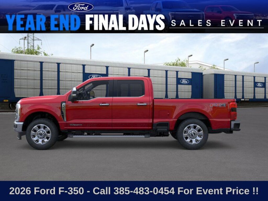 This 2026 Ruby Red Metallic Tinted Clearcoat Ford F-350SD 4WD is well equipped and includes these features and benefits: Ford Connectivity Package (1-Year Included), Internet access capable: 5G Modem - Ford Connectivity Package, 4WD, 4-Wheel Disc Brakes, ABS brakes, Air Conditioning, Brake assist, Compass, Delay-off headlights, Dual front impact airbags, Dual front side impact airbags, Electronic Stability Control, Electronic-Locking w/3.73 Axle Ratio, Emergency communication system: SYNC 4 911 Assist, Front anti-roll bar, Front reading lights, Fully automatic headlights, Heated door mirrors, Illuminated entry, Low tire pressure warning, Outside temperature display, Overhead airbag, Overhead console, Panic alarm, Passenger vanity mirror, Power door mirrors, Power steering, Power windows, Rear reading lights, Rear step bumper, Remote keyless entry, Security system, Speed control, Split folding rear seat, Steering wheel mounted audio controls, Tachometer, Telescoping steering wheel, Tilt steering wheel, Traction control, Trip computer, Turn signal indicator mirrors, and Variably intermittent wipers.