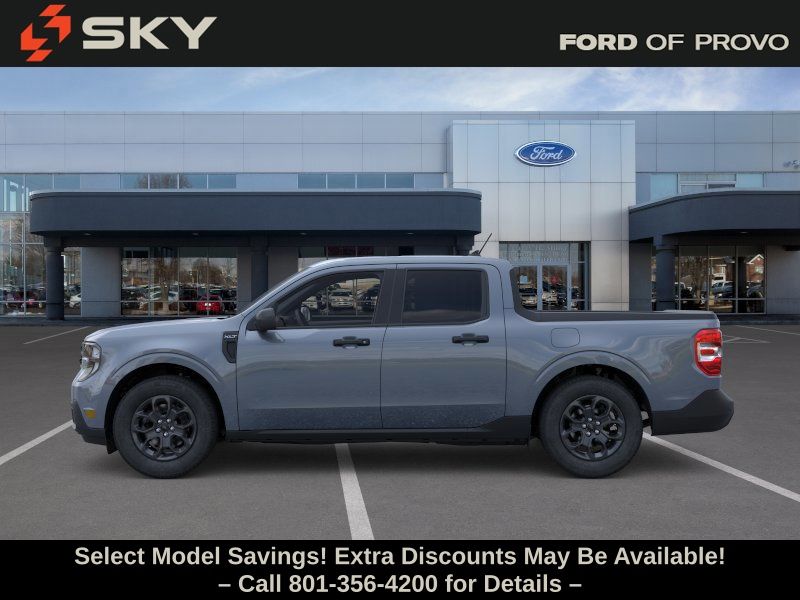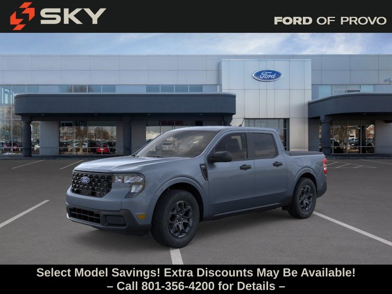 This 2026 Azure Gray Metallic Tri-Coat Ford Maverick XLT AWD is well equipped and includes these features and benefits: Equipment Group 301A (2.91 Axle Ratio, Radio: AM/FM Stereo with 6 Speakers, SiriusXM with 360L, SYNC 4 with Enhanced Voice Recognition, Unique Cloth Front Bucket Seats, and Wheels: 17" Carbonized Gray Painted Aluminum), Ford Co-Pilot360 (Auto High Beams, BLIS with Cross-Traffic Alert and Trailer Coverage, Exit Warning, Intersection Assist, Lane-Keeping System, Power Glass Manual-Folding Mirrors, Pre-Collision Assist with Automatic Emergency Braking, Rear Cross Traffic Braking, Rear Parking Sensors, and Rear-View Camera), Ford Connectivity Package (1-Year Included), Internet access capable: 5G Modem - Ford Connectivity Package, 2.5L I-4 Hybrid, 4-Wheel Disc Brakes, 6 Speakers, ABS brakes, Air Conditioning, Alloy wheels, AM/FM radio: SiriusXM with 360L, Apple CarPlay/Android Auto, Auto High-beam Headlights, Automatic temperature control, Brake assist, Bumpers: body-color, Compass, Delay-off headlights, Driver door bin, Driver vanity mirror, Dual front impact airbags, Dual front side impact airbags, Electronic Stability Control, Emergency communication system: SYNC 4 911 Assist, Exterior Parking Camera Rear, Four wheel independent suspension, Front anti-roll bar, Front Bucket Seats, Front Center Armrest, Front reading lights, Fully automatic headlights, Illuminated entry, Knee airbag, Low tire pressure warning, Occupant sensing airbag, Outside temperature display, Overhead airbag, Overhead console, Panic alarm, Passenger door bin, Passenger vanity mirror, Power door mirrors, Power steering, Power windows, Radio data system, Rear anti-roll bar, Rear seat center armrest, Rear step bumper, Remote keyless entry, Security system, Speed control, Speed-sensing steering, Steering wheel mounted audio controls, Telescoping steering wheel, Tilt steering wheel, Traction control, and Trip computer.