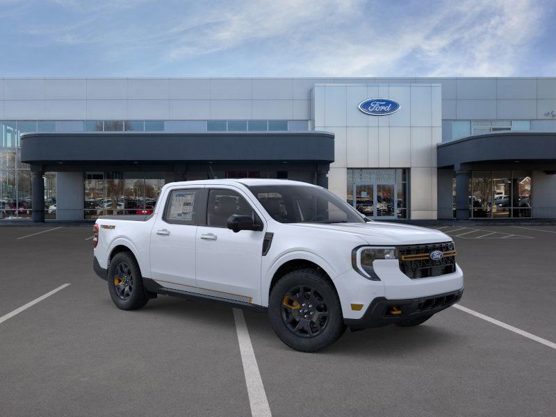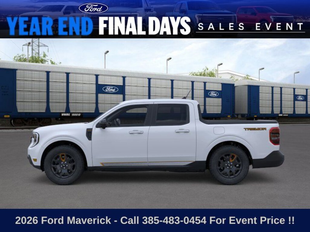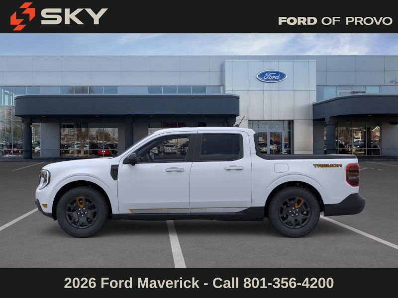 This 2026 Space White Metallic Ford Maverick Tremor AWD is well equipped and includes these features and benefits: Ford Connectivity Package (1-Year Included), Internet access capable: 5G Modem - Ford Connectivity Package, 3.63 Axle Ratio, 4-Wheel Disc Brakes, 8 Speakers, ABS brakes, ActiveX Trimmed Heated Front Bucket Seats, Air Conditioning, Alloy wheels, AM/FM radio: SiriusXM with 360L, Apple CarPlay/Android Auto, Auto High-beam Headlights, Automatic temperature control, Brake assist, Bumpers: body-color, Compass, Delay-off headlights, Driver door bin, Driver vanity mirror, Dual front impact airbags, Dual front side impact airbags, Electronic Stability Control, Emergency communication system: SYNC 4 911 Assist, Exterior Parking Camera Rear, Four wheel independent suspension, Front anti-roll bar, Front Bucket Seats, Front Center Armrest, Front dual zone A/C, Front reading lights, Fully automatic headlights, Heated door mirrors, Heated front seats, Heated steering wheel, Illuminated entry, Knee airbag, Low tire pressure warning, Navigation system: Connected Navigation, Occupant sensing airbag, Outside temperature display, Overhead airbag, Overhead console, Panic alarm, Passenger door bin, Passenger vanity mirror, Power door mirrors, Power driver seat, Power steering, Power windows, Radio data system, Radio: AM/FM Stereo with 8 Speakers, Rear anti-roll bar, Rear seat center armrest, Rear step bumper, Remote keyless entry, Security system, SiriusXM with 360L, Speed control, Speed-sensing steering, Steering wheel mounted audio controls, SYNC 4 with Enhanced Voice Recognition, Tachometer, Telescoping steering wheel, Tilt steering wheel, Traction control, Trip computer, and Wheels: 17" Machined-Face Tarnished Dark Painted.