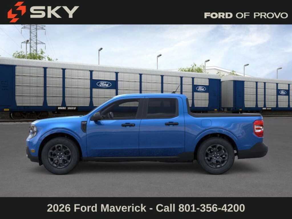 This 2026 Velocity Blue Ford Maverick XLT AWD is well equipped and includes these features and benefits: Ford Connectivity Package (1-Year Included), Internet access capable: 5G Modem - Ford Connectivity Package, 2.5L I-4 Hybrid, 2.91 Axle Ratio, 4-Wheel Disc Brakes, 6 Speakers, ABS brakes, Air Conditioning, Alloy wheels, AM/FM radio: SiriusXM with 360L, Apple CarPlay/Android Auto, Auto High Beams, Auto High-beam Headlights, Automatic temperature control, Brake assist, Bumpers: body-color, Compass, Delay-off headlights, Driver door bin, Driver vanity mirror, Dual front impact airbags, Dual front side impact airbags, Electronic Stability Control, Emergency communication system: SYNC 4 911 Assist, Exterior Parking Camera Rear, Four wheel independent suspension, Front anti-roll bar, Front Bucket Seats, Front Center Armrest, Front reading lights, Fully automatic headlights, Illuminated entry, Intersection Assist, Knee airbag, Lane-Keeping System, Low tire pressure warning, Occupant sensing airbag, Outside temperature display, Overhead airbag, Overhead console, Panic alarm, Passenger door bin, Passenger vanity mirror, Power door mirrors, Power steering, Power windows, Pre-Collision Assist w/Automatic Emergency Braking, Radio data system, Radio: AM/FM Stereo w/6 Speakers, Rear anti-roll bar, Rear seat center armrest, Rear step bumper, Rear-View Camera, Remote keyless entry, Security system, SiriusXM w/360L, Speed control, Speed-sensing steering, Steering wheel mounted audio controls, SYNC 4 w/Enhanced Voice Recognition, Telescoping steering wheel, Tilt steering wheel, Traction control, Trip computer, Unique Cloth Front Bucket Seats, and Wheels: 17" Carbonized Gray Painted Aluminum.