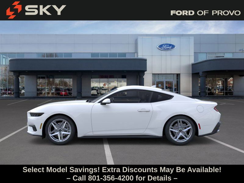 This 2026 Oxford White Ford Mustang EcoBoost Premium RWD is well equipped and includes these features and benefits: 1st Row Carpeted Black Floor Mats, 4-Wheel Disc Brakes, ABS brakes, Air Conditioning, Alloy wheels, AM/FM Stereo, Auto High-beam Headlights, Automatic temperature control, Brake assist, Bumpers: body-color, Compass, Delay-off headlights, Driver door bin, Driver vanity mirror, Dual front impact airbags, Dual front side impact airbags, Electronic Stability Control, Emergency communication system: 911 Assist, Exterior Parking Camera Rear, Four wheel independent suspension, Front anti-roll bar, Front Bucket Seats, Front Center Armrest, Front dual zone A/C, Front reading lights, Fully automatic headlights, Illuminated entry, Knee airbag, Leather Shift Knob, Low tire pressure warning, Occupant sensing airbag, Outside temperature display, Overhead airbag, Overhead console, Panic alarm, Passenger door bin, Passenger vanity mirror, Power door mirrors, Power steering, Power windows, Premium Floor Liners Front and Rear (with Carpet Mats), Radio data system, Rain sensing wipers, Rear anti-roll bar, Rear Parking Sensors, Rear window defroster, Remote keyless entry, Speed control, Speed-sensing steering, Speed-Sensitive Wipers, Split folding rear seat, Sport steering wheel, Steering wheel mounted audio controls, SYNC 4, Tachometer, Telescoping steering wheel, Tilt steering wheel, Traction control, Trip computer, Variably intermittent wipers, Voltmeter, Wheels: 18" x 8" Painted Shadow Silver Cast Aluminum, and Wheels: 19" x 8.5" Premier Polished Aluminum.