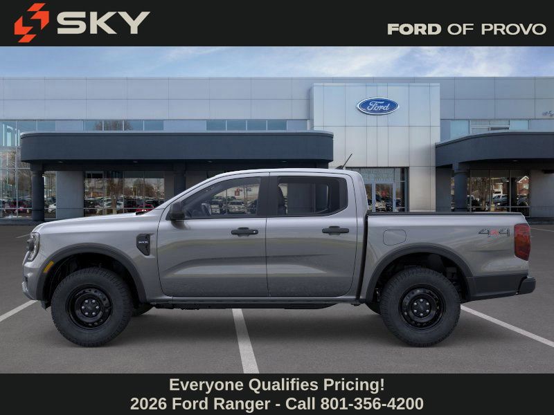 This 2026 Carbonized Gray Metallic Ford Ranger XL 4WD is well equipped and includes these features and benefits: STX Appearance Package (Halogen Fog Lamps, LED Reflector Headlamps, and STX Fender Badge), 4WD, 3.73 Axle Ratio, 4-Wheel Disc Brakes, 6 Speakers, ABS brakes, Air Conditioning, Alloy wheels, AM/FM radio, AM/FM Stereo, Auto High-beam Headlights, Brake assist, Bumpers: body-color, Cloth Front Bucket Seats, Compass, Delay-off headlights, Driver door bin, Dual front impact airbags, Dual front side impact airbags, Electronic Stability Control, Emergency communication system: SYNC 4 911 Assist, Front anti-roll bar, Front Bucket Seats, Front Center Armrest, Front fog lights, Front reading lights, Front wheel independent suspension, Fully automatic headlights, Illuminated entry, Low tire pressure warning, Occupant sensing airbag, Outside temperature display, Overhead airbag, Overhead console, Panic alarm, Passenger door bin, Power door mirrors, Power steering, Power windows, Rear reading lights, Rear seat center armrest, Rear step bumper, Remote keyless entry, Security system, Speed control, Speed-sensing steering, Steering wheel mounted audio controls, SYNC 4A, Telescoping steering wheel, Tilt steering wheel, Traction control, Trip computer, Variably intermittent wipers, and Voltmeter.