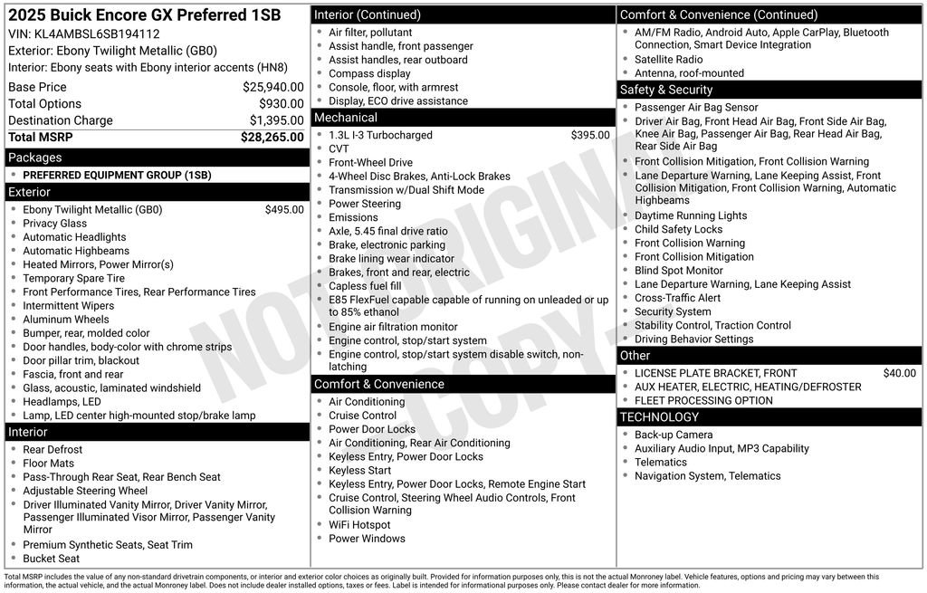 Ebony Twilight Metallic 2025 Buick Encore GX Preferred FWD CVT ECOTEC 1.3L Turbo