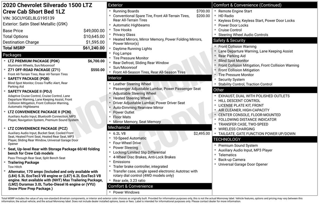 2020 Chevrolet Silverado 1500 LTZ Truck Crew Cab V-8 cyl