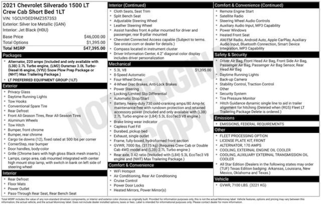 Used 2021 ChevroletSilverado 1500 LT Truck EcoTec3 V8 engine