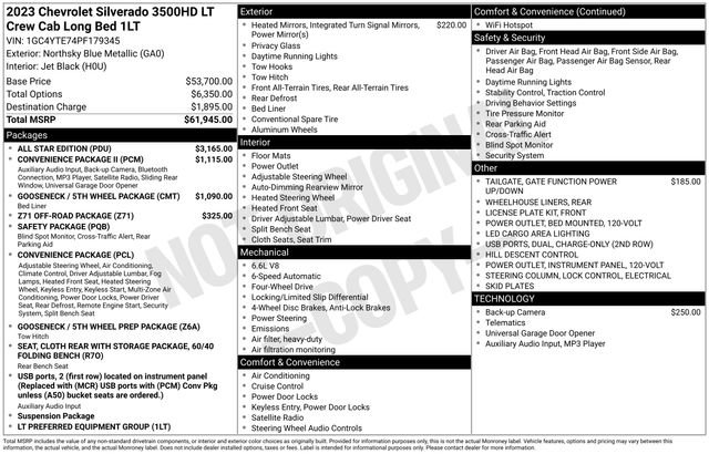 Turn every drive into something special with this Chevrolet Silverado 3500HD from Salt Lake Valley Chevrolet! Designed for comfort, performance, and style, this vehicle comes fully equipped with modern technology and convenience features youâll love. Price excludes tax, title, license fee, government fees, and $449 dealer documentary service fee. While every reasonable effort is made to ensure accuracy, we are not responsible for errors or omissions, and vehicles may be sold prior to inquiry please contact the dealer to confirm availability. All financing is subject to approved credit. If youâre shopping for used cars in Salt Lake City, or searching for the perfect SUV, truck, or sedan, this Chevrolet Silverado 3500HD delivers the dependability and value youâre looking for. Itâs the ideal match for your lifestyle - ready for everything from mountain adventures to city commutes. Visit Salt Lake Valley Chevrolet today and see why so many Utah drivers trust us for great deals on quality pre-owned vehicles. Explore our inventory online at www.slvchevy.com or call 801-969-8221 to schedule your test drive today! This impressive vehicle includes All Star Edition, Cloth Rear Seat w/Storage Package, Convenience Package (10-Way Power Driver Seat Adjuster w/Lumbar, 12-Volt Rear Auxiliary Power Outlet, 2nd Row Dual USB Charge-Only Ports, Dual-Zone Automatic Climate Control, Electric Rear-Window Defogger, Electrical Lock Control Steering Column, Front 40/20/40 Split-Bench Seats w/Lockable Storage, Front LED Fog Lamps, Heated Driver & Front Outboard Passenger Seats, Heated Steering Wheel, Keyless Open & Start, LED Cargo Area Lighting, Manual Tilt/Telescoping Steering Column, Remote Vehicle Starter System, and Unauthorized Entry Theft-Deterrent System), Convenience Package II (120-Volt Bed Mounted Power Outlet, 120-Volt Instrument Panel Power Outlet, 2 USB Ports in Instrument Panel, 6-Speaker Audio System Feature, Advanced Trailering System, HD Rear Vision Camera, Hitch Guidance w/Hitch View, Power Sliding Rear Window w/Defogger, Radio: Chevrolet Infotainment 3 Plus System, SiriusXM w/360L, Universal Home Remote, and Wireless Phone Projection), Gooseneck/5th Wheel Package, Gooseneck/5th Wheel Prep Package, Preferred Equipment Group 1LT (170 Amp Alternator, 2 USB Ports (First Row), 2-Speed Electronic Shift Transfer Case, 4.2 Diagonal Color Display Driver Info Center, Black Mirror Caps, Bluetooth® For Phone, Chevrolet Connected Access Capable, Chrome Front Grille Bar w/Molded Grille Inserts, Color-Keyed Carpeting Floor Covering, Compass Located In Instrument Cluster, Deep-Tinted Glass, EZ Lift Power Lock & Release Tailgate, Front Rubberized Vinyl Floor Mats, Halogen Reflector Headlamps, Integrated Trailer Brake Controller, Manual Tilt Wheel Steering Column, OnStar & Chevrolet Connected Services Capable, Outside Power-Adjustable Mirrors, Power Door Locks, Power Front Windows w/Driver Express Up/Down, Power Front Windows w/Passenger Express Down, Power Rear Windows w/Express Down, Rear 60/40 Folding Bench Seat (Folds Up), Rear Rubberized-Vinyl Floor Mats, Rear Vision Camera, Remote Keyless Entry, SiriusXM Radio, Standard Tailgate, Steering Wheel Audio Controls, Steering Wheel Mounted Electronic Cruise Control, Wi-Fi Hotspot Capable, and Wrapped Steering Wheel), Safety Package (Lane Change Alert w/Side Blind Zone Alert, Rear Cross Traffic Alert, and Ultrasonic Front & Rear Park Assist), Suspension Package, 3.73 Rear Axle Ratio, 4-Way Manual Driver Seat Adjuster, 4-Way Manual Passenger Seat Adjuster, 4-Wheel Disc Brakes, 6 Speakers, ABS brakes, Air Conditioning, AM/FM radio: SiriusXM, Apple CarPlay/Android Auto, Auto-Dimming Inside Rear-View Mirror, Bed View Camera w/2 Trailer Camera Provisions, Brake assist, Bumpers: chrome, Chevytec Spray-On Black Bedliner, Cloth Seat Trim, Compass, Delay-off headlights, Driver door bin, Driver vanity mirror, Dual front impact airbags, Dual front side impact airb