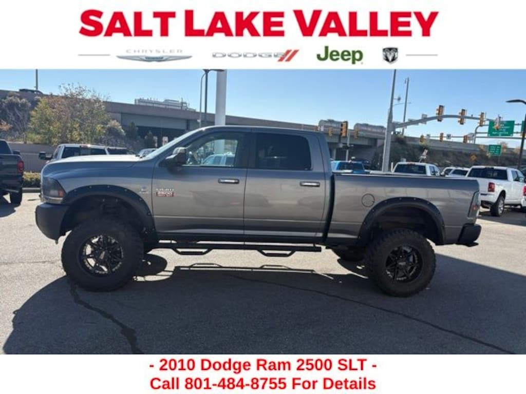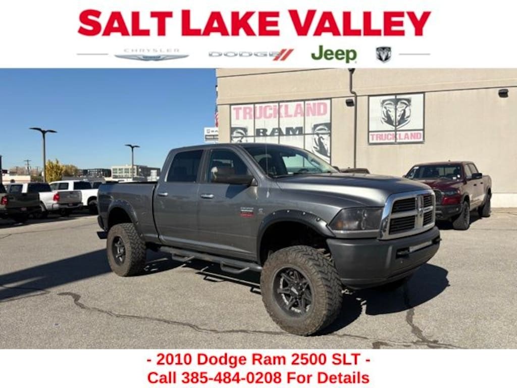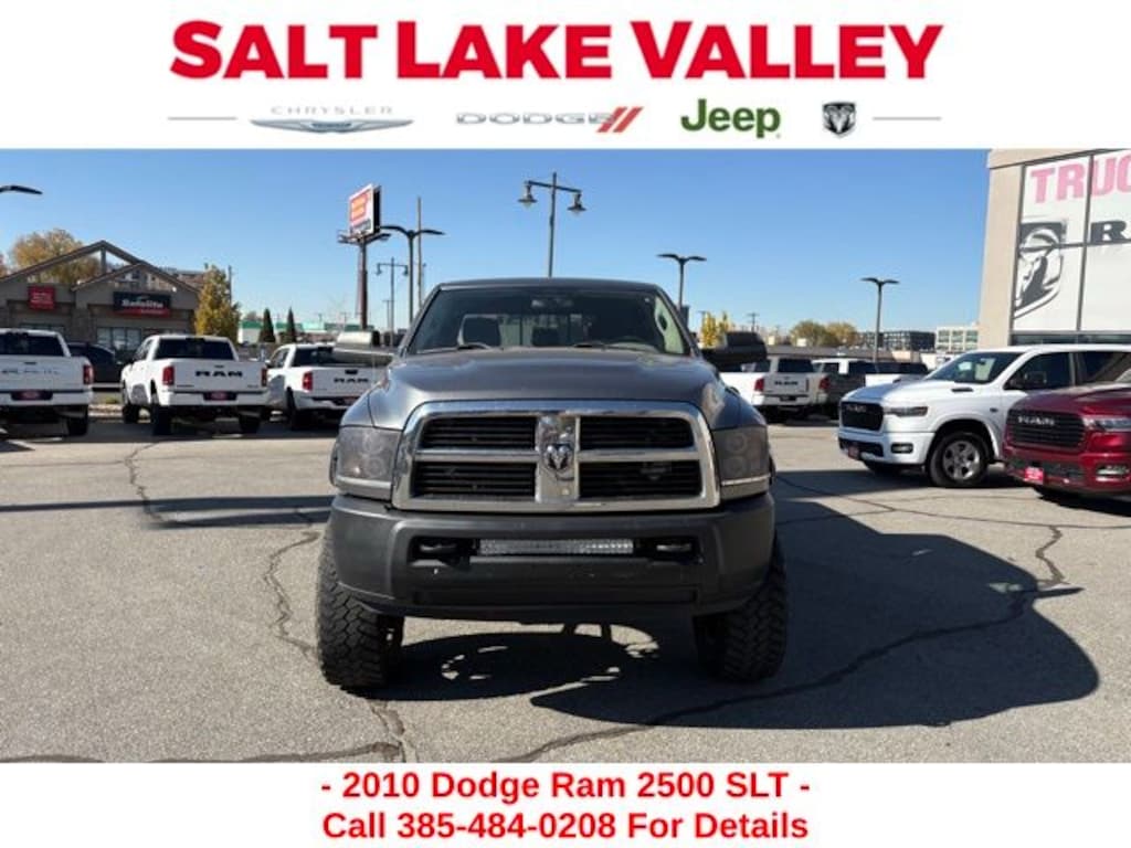 Get ready to hit the road in this Ram 2500, a standout choice for drivers looking for reliability, performance, and style! This impressive vehicle is packed with premium features designed to make every drive more enjoyable. Plus, youâll enjoy a $1,000 finance savings, already included in the sale price, when you finance through one of our trusted lending partners. Whether youâre searching for used cars in Salt Lake City, a dependable SUV, or a powerful truck, this Ram 2500 delivers everything you need and more. Visit Salt Lake Valley Chrysler Dodge Jeep Ram today to test drive or explore our entire selection of quality pre-owned vehicles. Donât wait - shop online at www.slvcdjr.com or call 801-484-8755 to learn more! This amazing vehicle comes loaded with options like Quick Order Package 2FG SLT, 115V Auxiliary Power Outlet, 17" x 8" Aluminum Wheels, 17" x 8" Steel Chrome Clad Wheels, 3.73 Rear Axle Ratio, 30GB HDD w/6,700-Song Capacity, 4-Wheel Disc Brakes, 40/20/40 Split Bench Seat, 6 Speakers, 6.5" Touch Screen Display, ABS brakes, Air Conditioning, AM/FM radio: SIRIUS, Audio Jack Input for Mobile Devices, Black Exterior Mirrors, Bumpers: chrome, CD player, Center Hub, Cloth 40/20/40 Bench Seat, Compass, Delay-off headlights, Driver door bin, Dual front impact airbags, Electronically Controlled Throttle, Exterior Mirrors Courtesy Lamps, Exterior Mirrors w/Heating Element, Exterior Mirrors w/Supplemental Signals, Front anti-roll bar, Front Bumper Sight Shields, Front Center Armrest w/Storage, Front reading lights, Fully automatic headlights, Heated door mirrors, Illuminated entry, Low tire pressure warning, Mini Floor Console, Occupant sensing airbag, Outside temperature display, Overhead airbag, Overhead console, Panic alarm, Passenger door bin, Passenger vanity mirror, Power door mirrors, Power Lumbar Adjust, Power steering, Power windows, Radio data system, Radio: Media Center 130 CD/MP3, Radio: Media Center 430 CD/DVD/HDD, Rear 60/40 Split Folding Seat, Rear seat center armrest, Rear step bumper, Remote keyless entry, SIRIUS Satellite Radio, Speed control, Tachometer, Tilt steering wheel, Tip Start, Trip computer, Uconnect Phone w/Voice Command, Variably intermittent wipers, and Voltmeter, making it the perfect choice for your next adventure.