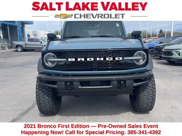 Turn every drive into something special with this Ford Bronco from Salt Lake Valley Chevrolet! Designed for comfort, performance, and style, this vehicle comes fully equipped with modern technology and convenience features youâll love. Plus, enjoy a $1,000 finance savings, already included in the sale price, when you finance through one of our trusted lending partners. If youâre shopping for used cars in Salt Lake City, or searching for the perfect SUV, truck, or sedan, this Ford Bronco delivers the dependability and value youâre looking for. Itâs the ideal match for your lifestyle - ready for everything from mountain adventures to city commutes. Visit Salt Lake Valley Chevrolet today and see why so many Utah drivers trust us for great deals on quality pre-owned vehicles. Explore our inventory online at www.slvchevy.com or call 801-969-8221 to schedule your test drive today! This impressive vehicle includes Equipment Group 954A Lux Package, 10 Speakers, 4-Wheel Disc Brakes, 4.7 Axle Ratio, ABS brakes, Air Conditioning, Alloy wheels, AM/FM radio: SiriusXM with 360L, Auto High-beam Headlights, Auto-dimming Rear-View mirror, Automatic temperature control, Brake assist, Compass, Connected Built-In Navigation, Convertible HardTop, Convertible roof lining, Delay-off headlights, Driver door bin, Driver vanity mirror, Dual front impact airbags, Dual front side impact airbags, Electronic Stability Control, Emergency communication system: 911 Assist, Engine Block Heater, Front anti-roll bar, Front Bucket Seats, Front Center Armrest, Front dual zone A/C, Front reading lights, Front wheel independent suspension, Fully automatic headlights, Glass rear window, Heated door mirrors, Heated front seats, Heated Leather-Trimmed/Vinyl Bucket Seats, Heated steering wheel, Illuminated entry, Integrated roll-over protection, Keyless Entry Keypad, Leather Shift Knob, Low tire pressure warning, Navigation system: Connected Navigation, Occupant sensing airbag, Outside temperature display, Overhead airbag, Overhead console, Panic alarm, Passenger door bin, Passenger vanity mirror, Power door mirrors, Power steering, Power windows, Radio data system, Radio: B&O Sound System by Bang & Olufsen, Rear window defroster, Rear window wiper, Remote keyless entry, Security system, SiriusXM Radio w/360L, Speed control, Split folding rear seat, Steering wheel mounted audio controls, SYNC 4, Tachometer, Telescoping steering wheel, Tilt steering wheel, Towing Capability, Traction control, Trip computer, Turn signal indicator mirrors, Variably intermittent wipers, Voltmeter, and Wheels: 17 Black High Gloss-Painted Aluminum, offering everything you need for your next adventure.