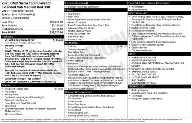 Take your drives to the next level with this GMC Sierra 1500 from Salt Lake Valley Buick GMC! Engineered for a smooth ride, advanced convenience, and lasting dependability, this vehicle is ready to handle everything your day throws at you. Plus, enjoy a $1,000 finance savings, already included in the sale price, when you finance through one of our trusted lending partners. Looking for quality used cars in Salt Lake City? This GMC Sierra 1500 delivers style, versatility, and value - perfect for daily commutes, family trips, or weekend adventures. Stop by Salt Lake Valley Buick GMC to see this vehicle in person and explore our wide selection of pre-owned cars, trucks, and SUVs. Browse online at www.slvbuickgmc.com or call 801-265-1511 to schedule your test drive today! With High Capacity Suspension Package, Preferred Equipment Group 3SB (120-Volt Bed Mounted Power Outlet, 120-Volt Interior Power Outlet, 2 Charge/Data USB Ports, 2 Type-C Charge-Only Rear USB Ports, 6-Speaker Audio System Feature, Auto-Locking Rear Differential, Body Color Header w/Gloss Black Mesh Grille Bars, Color-Keyed Carpeting Floor Covering, Deep-Tinted Glass, Electric Rear-Window Defogger, Front Frame-Mounted Black Recovery Hooks, Front Rubberized-Vinyl Floor Mats, HD Rear Vision Camera, Integrated Trailer Brake Controller, Keyless Open & Start, LED Cargo Area Lighting, Manual Tilt-Wheel & Telescoping Steering Column, OnStar Services Capable, Power Door Locks, Power Front Windows w/Driver Express Up/Down, Power Front Windows w/Passenger Express Down, Power Rear Windows w/Express Down, Push Button Start, Rear Rubberized-Vinyl Floor Mats, Remote Vehicle Starter System, SiriusXM w/360L Trial Subscription, Steering Wheel Audio Controls, Theft Deterrent System (Unauthorized Entry), Wi-Fi Hotspot Capable, and Wireless Apple CarPlay/Wireless Android Auto), Trailering Package (Hitch Guidance), X31 Off-Road Package (Dual Exhaust System, Heavy-Duty Air Filter, Hill Descent Control, Off-Road Suspension, Rear Wheelhouse Liners, and X31 Hard Badge), 10-Way Power Driver Seat Adjuster w/Lumbar, 170 Amp Alternator, 220 Amp Alternator, 4-Way Manual Passenger Seat Adjuster, 4-Wheel Disc Brakes, 6 Speakers, ABS brakes, Air Conditioning, Alloy wheels, AM/FM radio: SiriusXM with 360L, Apple CarPlay/Android Auto, Auto High-beam Headlights, Automatic Emergency Braking, Automatic temperature control, Auxiliary External Transmission Oil Cooler, Brake assist, Buckle to Drive, Bumpers: body-color, Cloth Seat Trim, Compass, Delay-off headlights, Driver door bin, Driver vanity mirror, Dual front impact airbags, Dual front side impact airbags, Electronic Stability Control, Emergency communication system: OnStar, External Engine Oil Cooling, Following Distance Indicator, Forward Collision Alert, Front 40/20/40 Split-Bench Seat, Front anti-roll bar, Front Center Armrest w/Storage, Front dual zone A/C, Front fog lights, Front License Plate Kit, Front Pedestrian Braking, Front reading lights, Front wheel independent suspension, Fully automatic headlights, Genuine wood dashboard insert, GMC MultiPro Tailgate, Heated door mirrors, Heated Driver & Front Outboard Passenger Seating, Heated front seats, Heated steering wheel, Illuminated entry, IntelliBeam Automatic High Beam On/Off, Lane Keep Assist w/Lane Departure Warning, Low tire pressure warning, Navigation System, Occupant sensing airbag, Outside temperature display, Overhead airbag, Overhead console, Panic alarm, Passenger door bin, Passenger vanity mirror, Power door mirrors, Power driver seat, Power steering, Power windows, Radio data system, Radio: Premium GMC Infotainment Audio System, Rear reading lights, Rear step bumper, Rear window defroster, Remote keyless entry, Security system, Speed control, Speed-sensing steering, Split folding rear seat, Steering wheel mounted audio controls, Tachometer, Telescoping steering wheel, Tilt steering wheel, Traction control, Trip computer, Variab