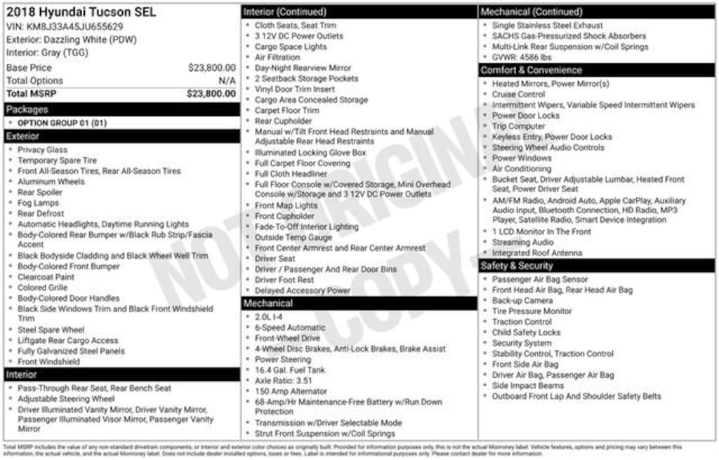 Turn every drive into something special with this Hyundai Tucson from Salt Lake Valley Chevrolet! Designed for comfort, performance, and style, this vehicle comes fully equipped with modern technology and convenience features you’ll love. Plus, enjoy a $1,000 finance savings, already included in the sale price, when you finance through one of our trusted lending partners. If you’re shopping for used cars in Salt Lake City, or searching for the perfect SUV, truck, or sedan, this Hyundai Tucson delivers the dependability and value you’re looking for. It’s the ideal match for your lifestyle - ready for everything from mountain adventures to city commutes. Visit Salt Lake Valley Chevrolet today and see why so many Utah drivers trust us for great deals on quality pre-owned vehicles. Explore our inventory online at www.slvchevy.com or call 801-969-8221 to schedule your test drive today! This impressive vehicle includes Option Group 01, 17 x 7.0J Alloy Wheels, 4-Wheel Disc Brakes, 6 Speakers, ABS brakes, Air Conditioning, Alloy wheels, AM/FM radio: SiriusXM, Apple CarPlay & Android Auto, Axle Ratio: 3.51, Brake assist, Bumpers: body-color, Delay-off headlights, Driver door bin, Driver vanity mirror, Dual front impact airbags, Dual front side impact airbags, Electronic Stability Control, Exterior Parking Camera Rear, Four wheel independent suspension, Front anti-roll bar, Front Bucket Seats, Front Center Armrest, Front fog lights, Front reading lights, Fully automatic headlights, Heated door mirrors, Heated Front Bucket Seats, Heated front seats, Illuminated entry, Low tire pressure warning, Occupant sensing airbag, Outside temperature display, Overhead airbag, Overhead console, Panic alarm, Passenger door bin, Passenger vanity mirror, Power door mirrors, Power driver seat, Power steering, Power windows, Radio: AM/FM/HD Radio/MP3 Audio System, Rear anti-roll bar, Rear seat center armrest, Rear window defroster, Rear window wiper, Remote keyless entry, Roof rack: rails only, Security system, Speed control, Speed-sensing steering, Split folding rear seat, Spoiler, Steering wheel mounted audio controls, Tachometer, Telescoping steering wheel, Tilt steering wheel, Traction control, Trip computer, Variably intermittent wipers, and YES Essentials Cloth Seat Trim, offering everything you need for your next adventure.