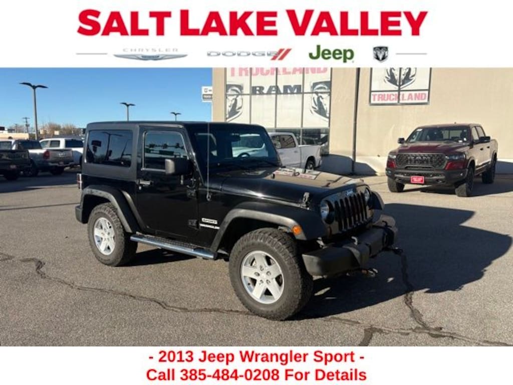 Get ready to hit the road in this Jeep Wrangler, a standout choice for drivers looking for reliability, performance, and style! This impressive vehicle is packed with premium features designed to make every drive more enjoyable. Plus, youâll enjoy a $1,000 finance savings, already included in the sale price, when you finance through one of our trusted lending partners. Whether youâre searching for used cars in Salt Lake City, a dependable SUV, or a powerful truck, this Jeep Wrangler delivers everything you need and more. Visit Salt Lake Valley Chrysler Dodge Jeep Ram today to test drive or explore our entire selection of quality pre-owned vehicles. Donât wait - shop online at www.slvcdjr.com or call 801-484-8755 to learn more! This amazing vehicle comes loaded with options like Mopar Chrome Edition Group (Mopar Chrome Exhaust Tip, Mopar Chrome Fuel Filler Door, MOPAR Chrome Taillamp Guards, and Mopar Chrome Tubular Side Steps), Power Convenience Group (Auto-Dimming Mirror w/Reading Lamp, Front 1-Touch Down Power Windows, Power Heated Mirrors, Power Locks, Remote Keyless Entry, and Security Alarm), Quick Order Package 24S (17" x 7.5" Aluminum Wheels, Air Conditioning, Chrome/Leather Wrapped Shift Knob, and Leather Wrapped Steering Wheel), 1-Year SiriusXM Radio Service, 16" x 7.0" Luxury Styled Steel Wheels, 3.21 Rear Axle Ratio, 4-Wheel Disc Brakes, 6 Speakers, ABS brakes, AM/FM radio, Anti-Spin Differential Rear Axle, Black 3-Piece Hard Top, Brake assist, CD player, Cloth Bucket Seats, Compass, Deep Tint Sunscreen Windows, Driver door bin, Driver vanity mirror, Dual front impact airbags, Electronic Stability Control, Freedom Panel Storage Bag, Front anti-roll bar, Front Bucket Seats, Front Center Armrest w/Storage, Front fog lights, Integrated roll-over protection, Low tire pressure warning, Normal Duty Suspension, Occupant sensing airbag, Outside temperature display, Passenger door bin, Passenger vanity mirror, Power steering, Radio: Uconnect 130 AM/FM/CD/MP3, Rear anti-roll bar, Rear Window Defroster, Rear Window Wiper/Washer, SIRIUS Satellite Radio, Speed control, Steering wheel mounted audio controls, Sunrider Soft Top, Tachometer, Tilt steering wheel, Tinted Rear Quarter & Liftgate Windows, Traction control, Trip computer, and Variably intermittent wipers, making it the perfect choice for your next adventure.
